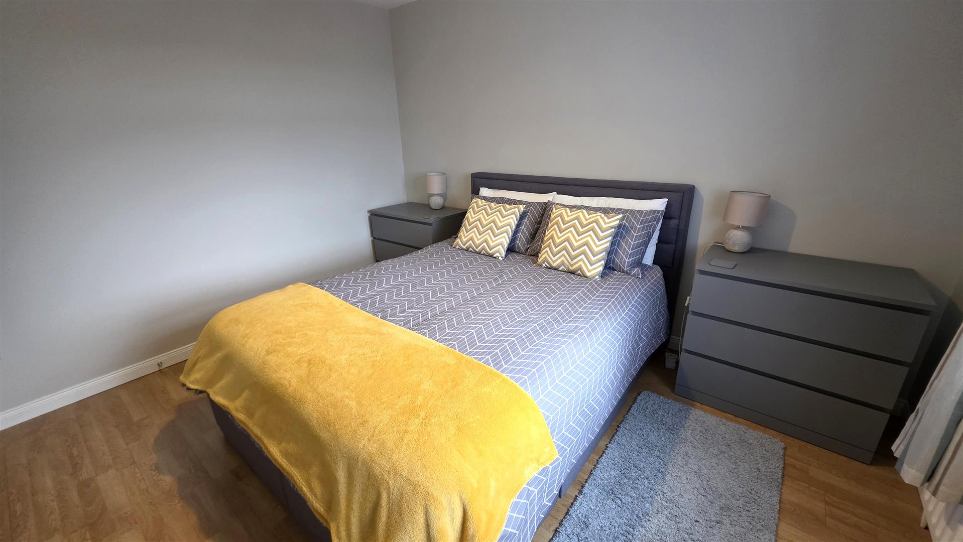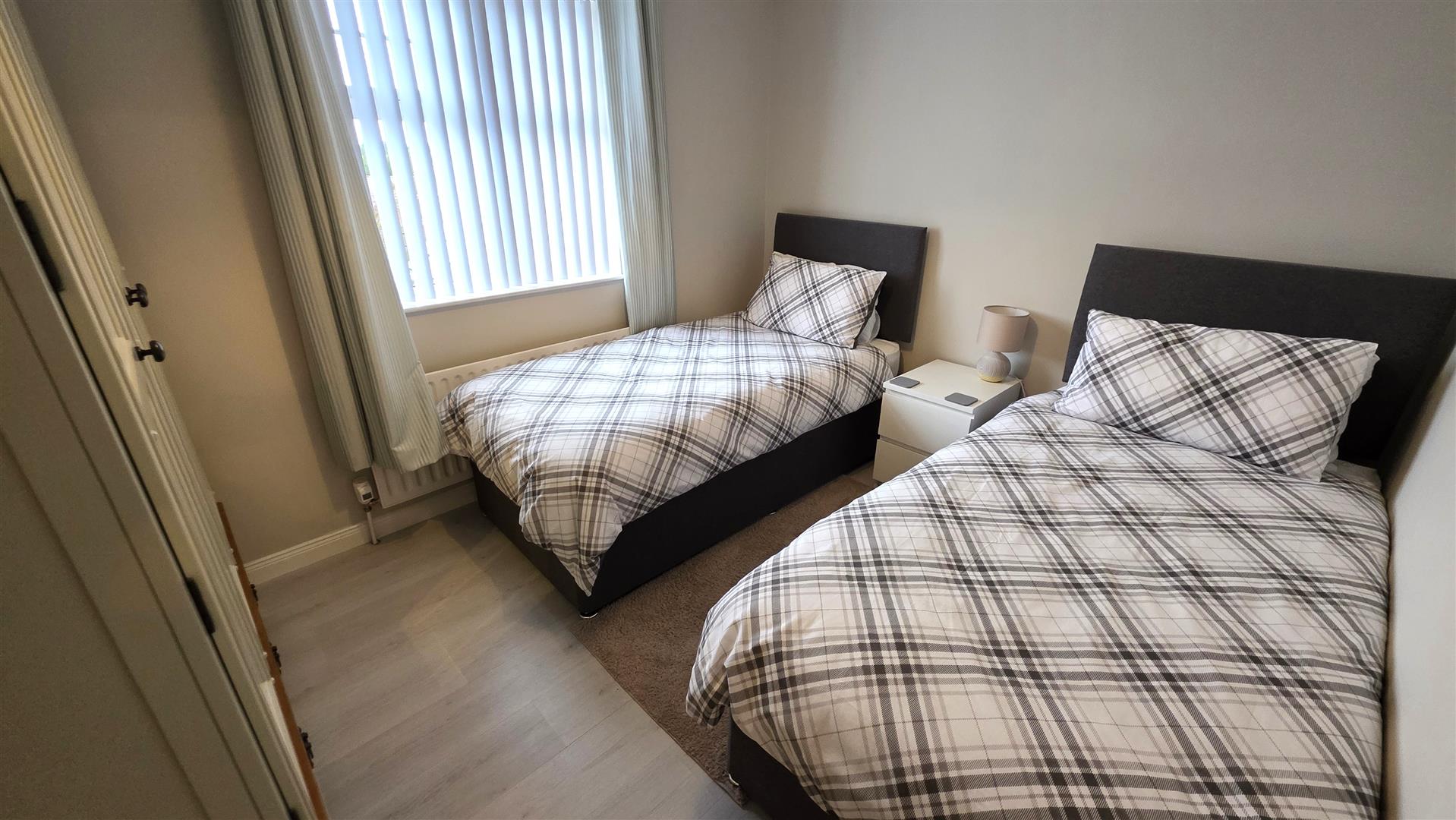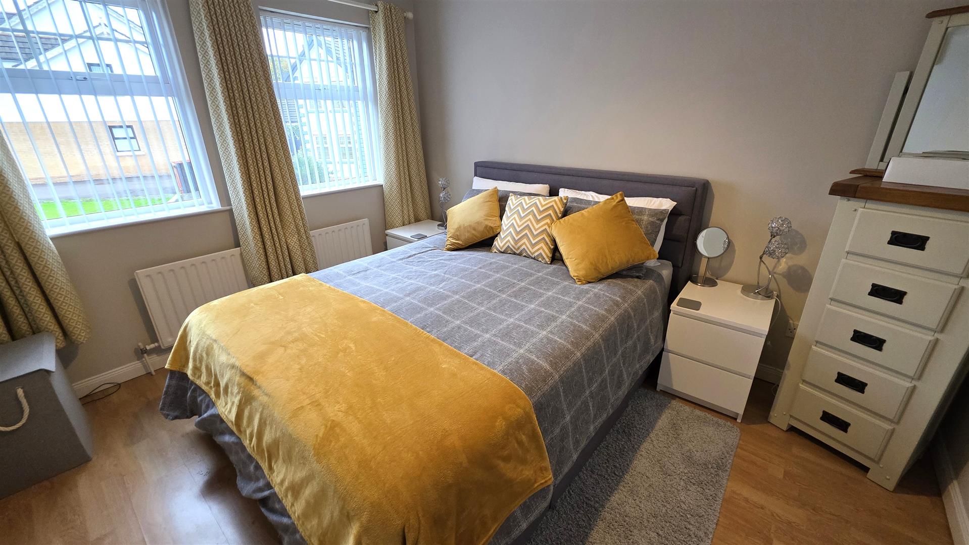 Garden to front in neat lawn. Paved pathway to front and side with timber pedestrian gateway. Recently tarmacked drive with off-street parking for 2 plus cars. Access to;