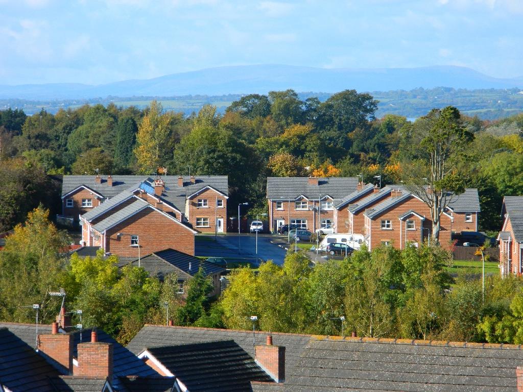 Views towards Lough Neagh and the Sperrin Mountains. Single radiator. Wood laminate floor
