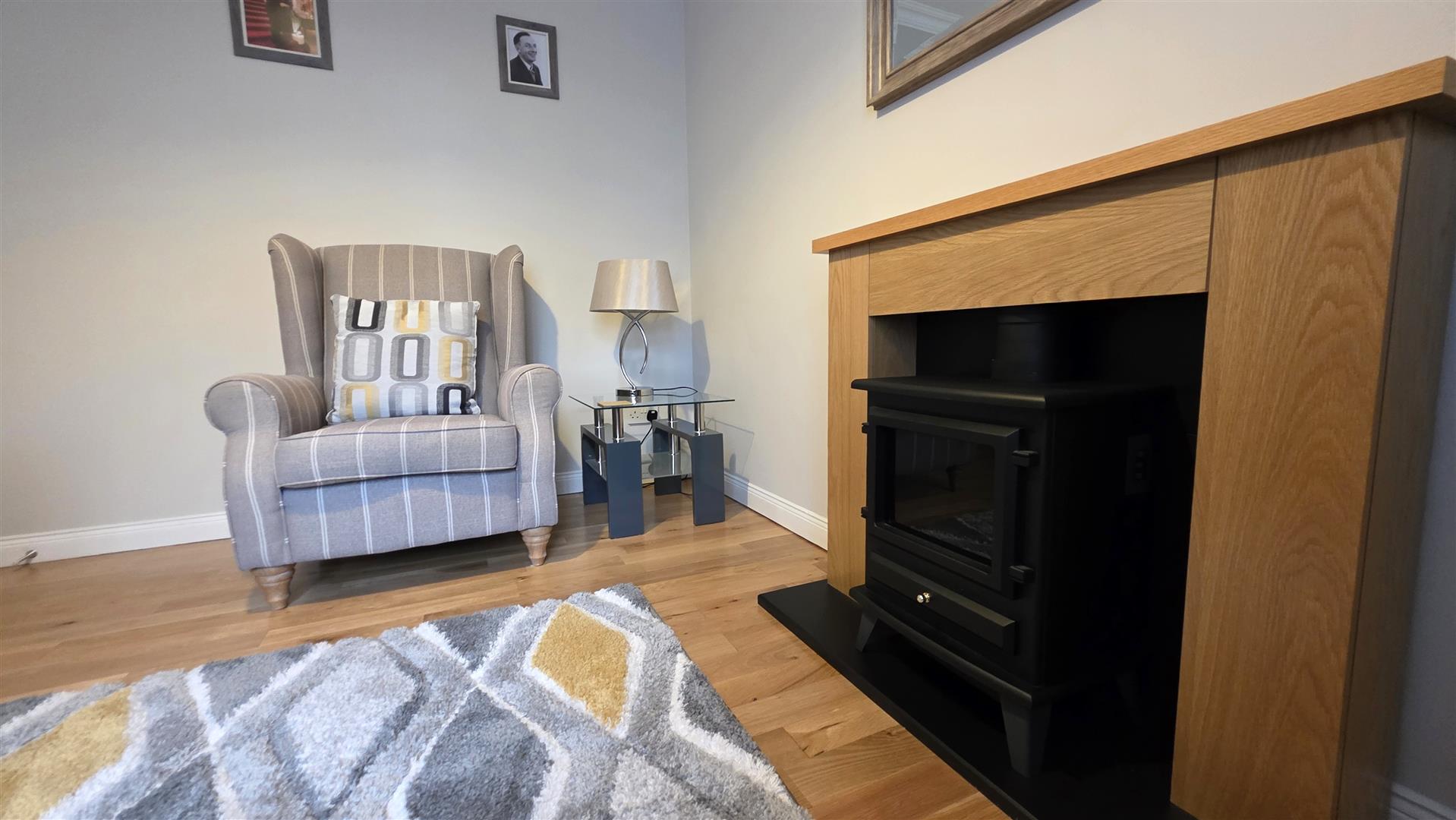 Open fire with feature polished sandstone effect surround, part polished cast iron inset and polished granite hearth. Solid wood floor. Dual aspect windows. Double radiator.
