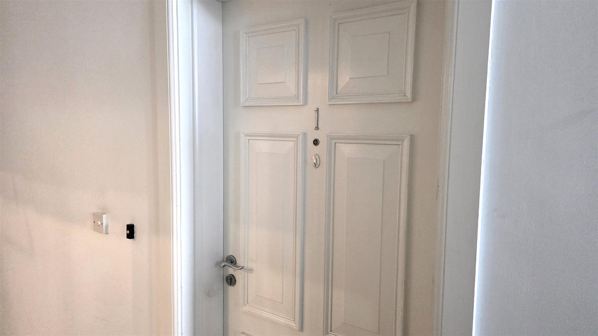 Fully tiled floor. Time delay light switches. 6 panel entrance door to: