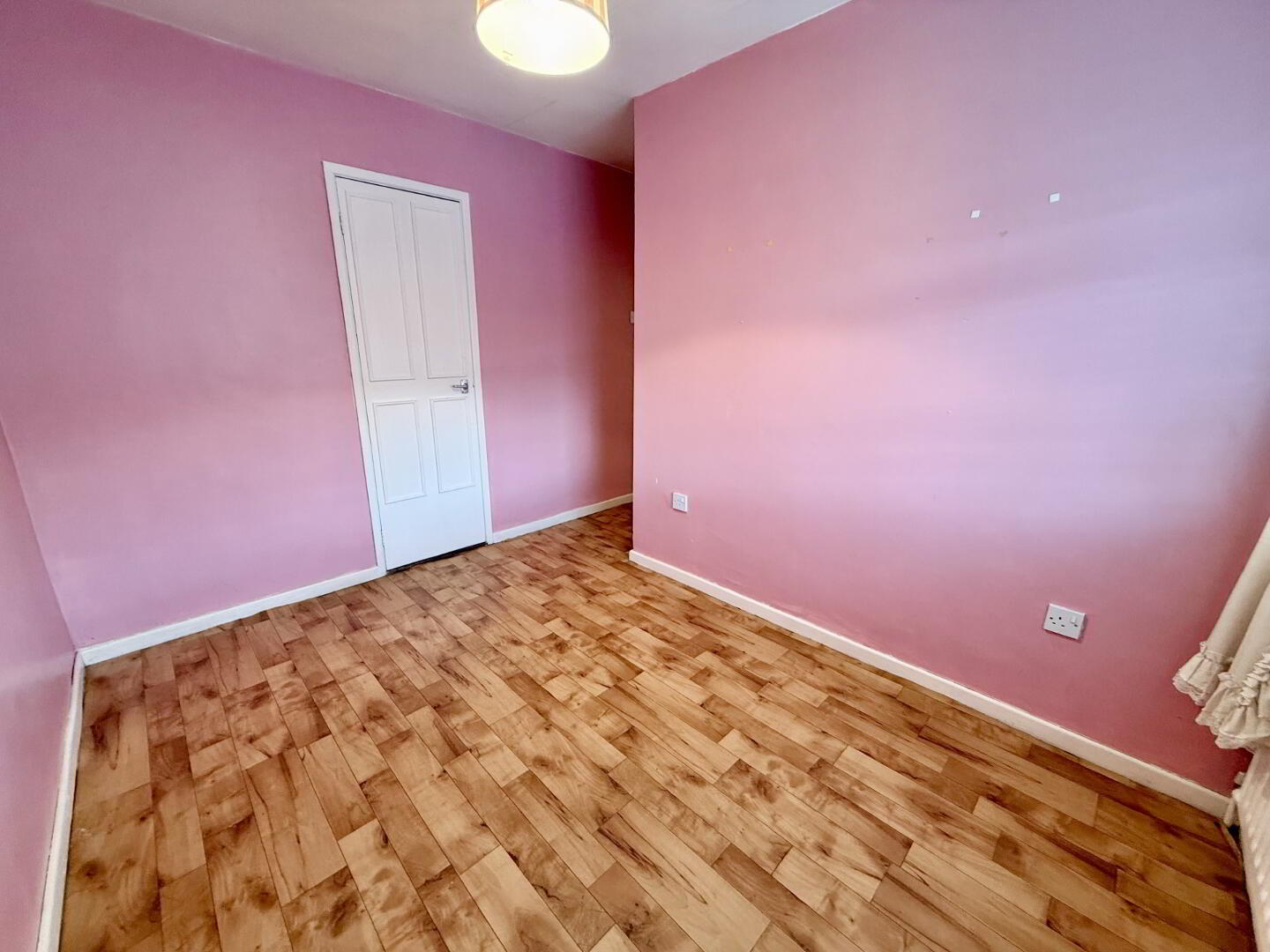 Sizeable front aspect double bedroom with wood effect flooring, TV and electrical points, and a built-in wardrobe.