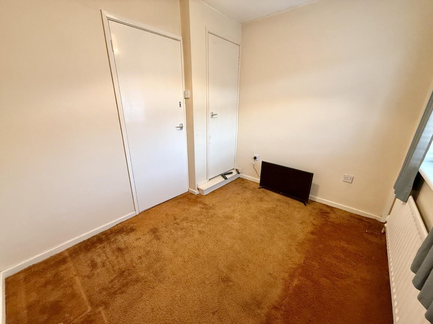 Sizeable front aspect room featuring carpet flooring and a built-in wardrobe.