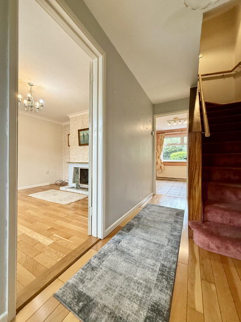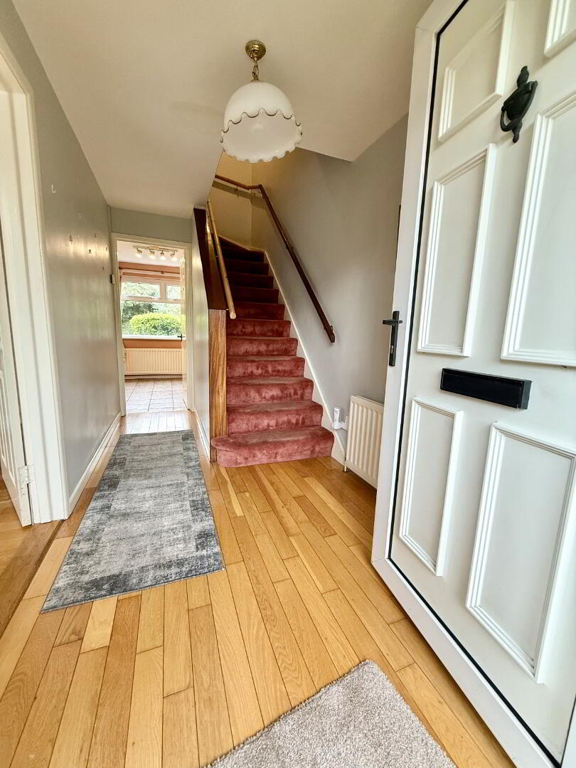 Spacious entrance hall featuring elegant wooden flooring, offering access to the main living areas and accommodation throughout the property.