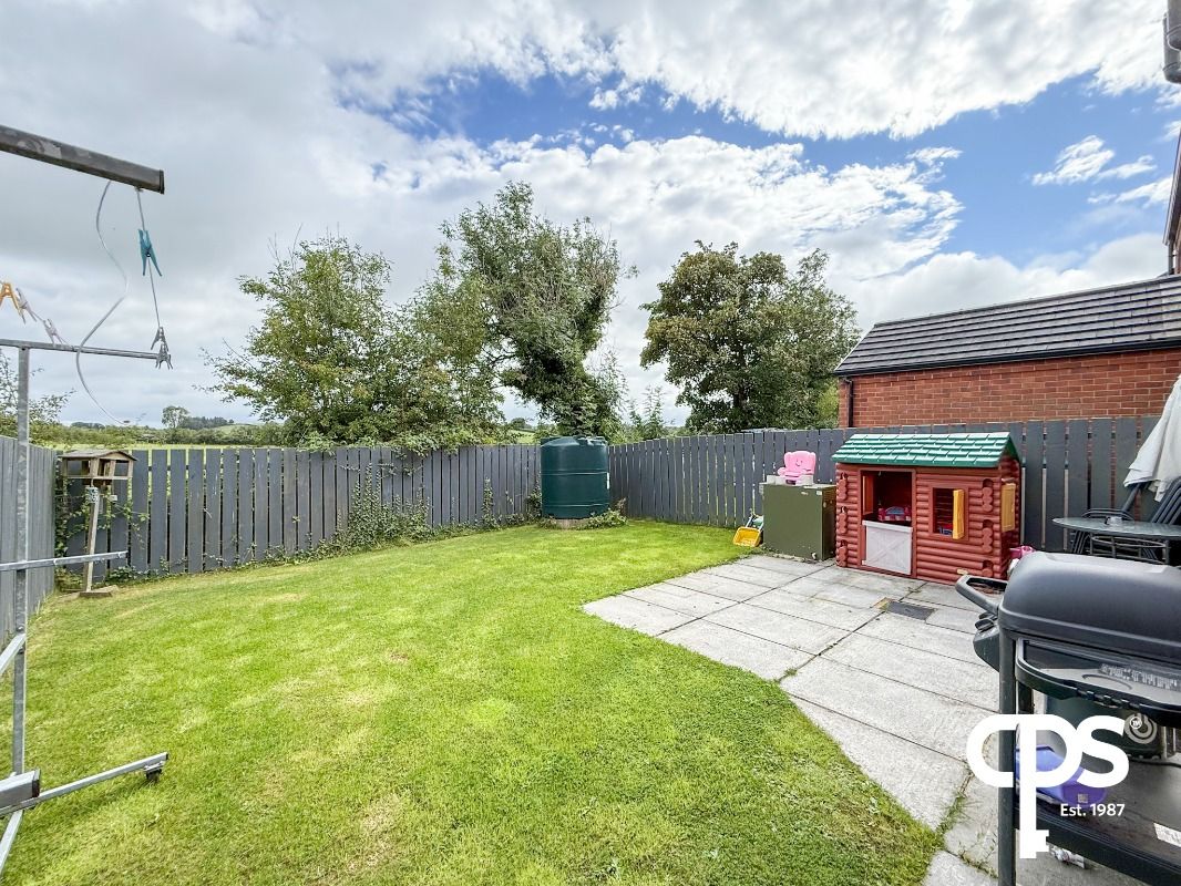 Rear Garden: A private space featuring a combination of lawn and paved patio, ideal for outdoor dining or children’s play.