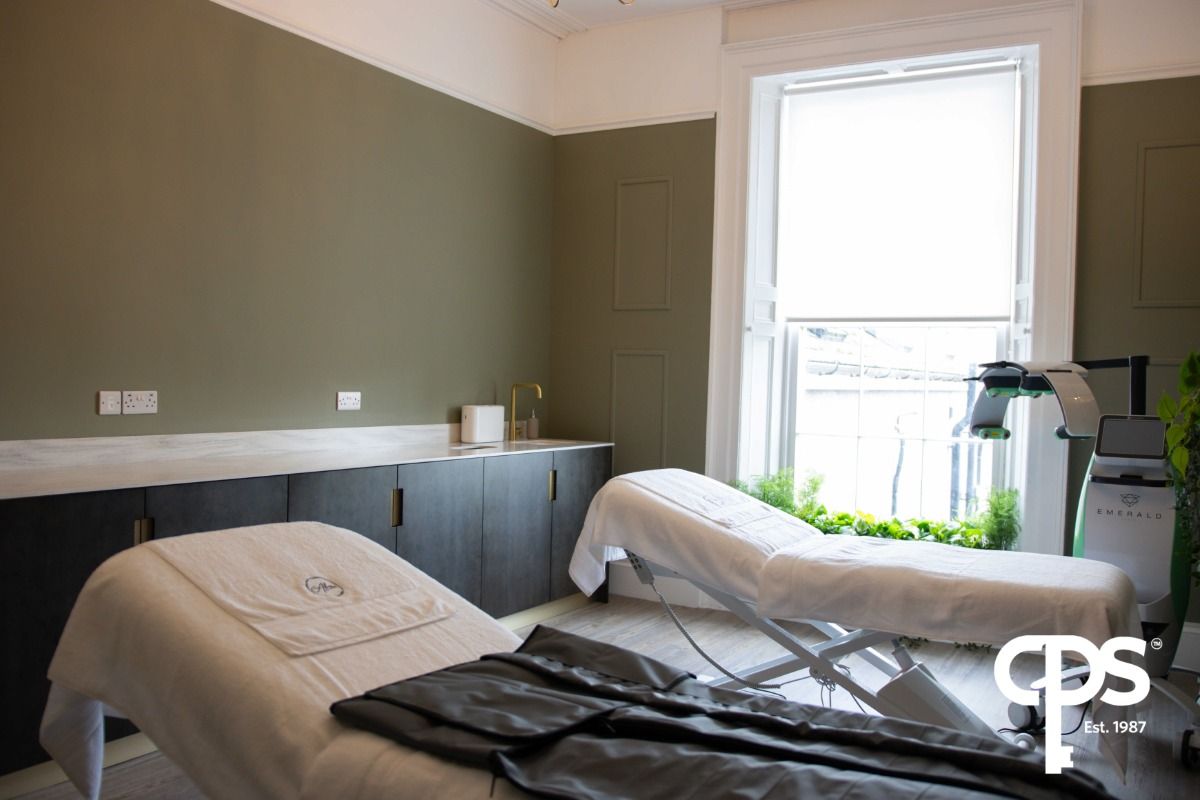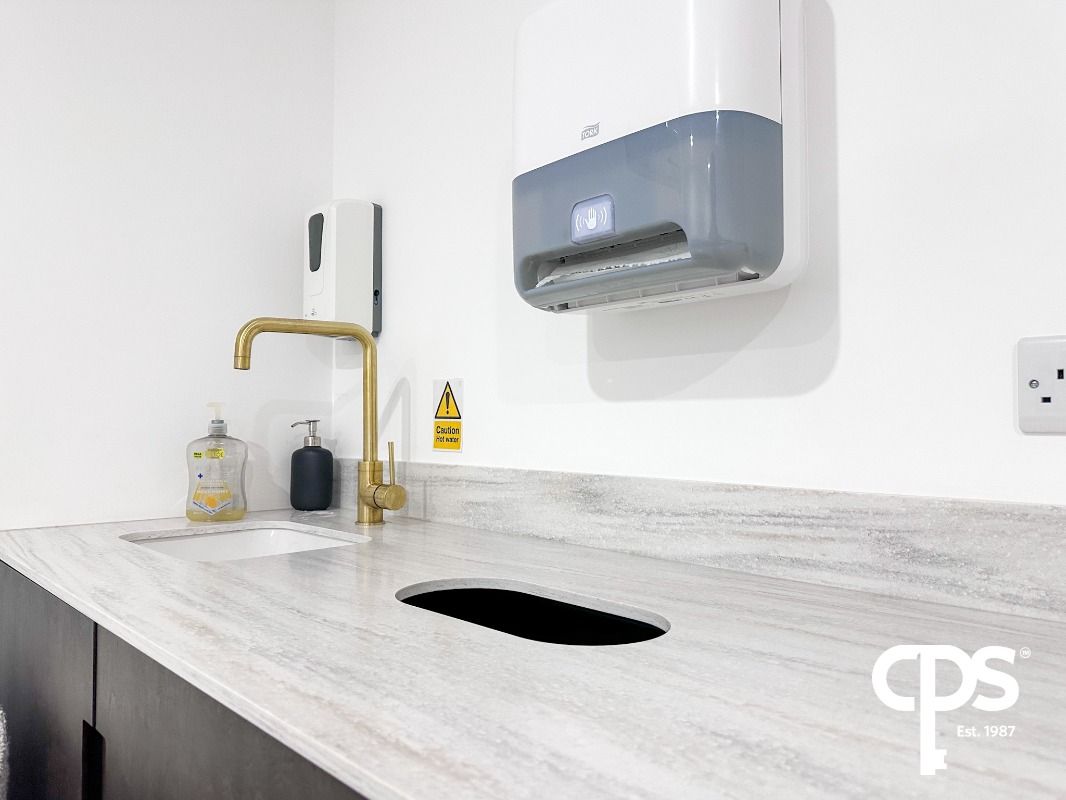 All office / treatment rooms come fitted with worktop space to include a sink. Rooms also benefit room AC which is controlled from inside the rooms.