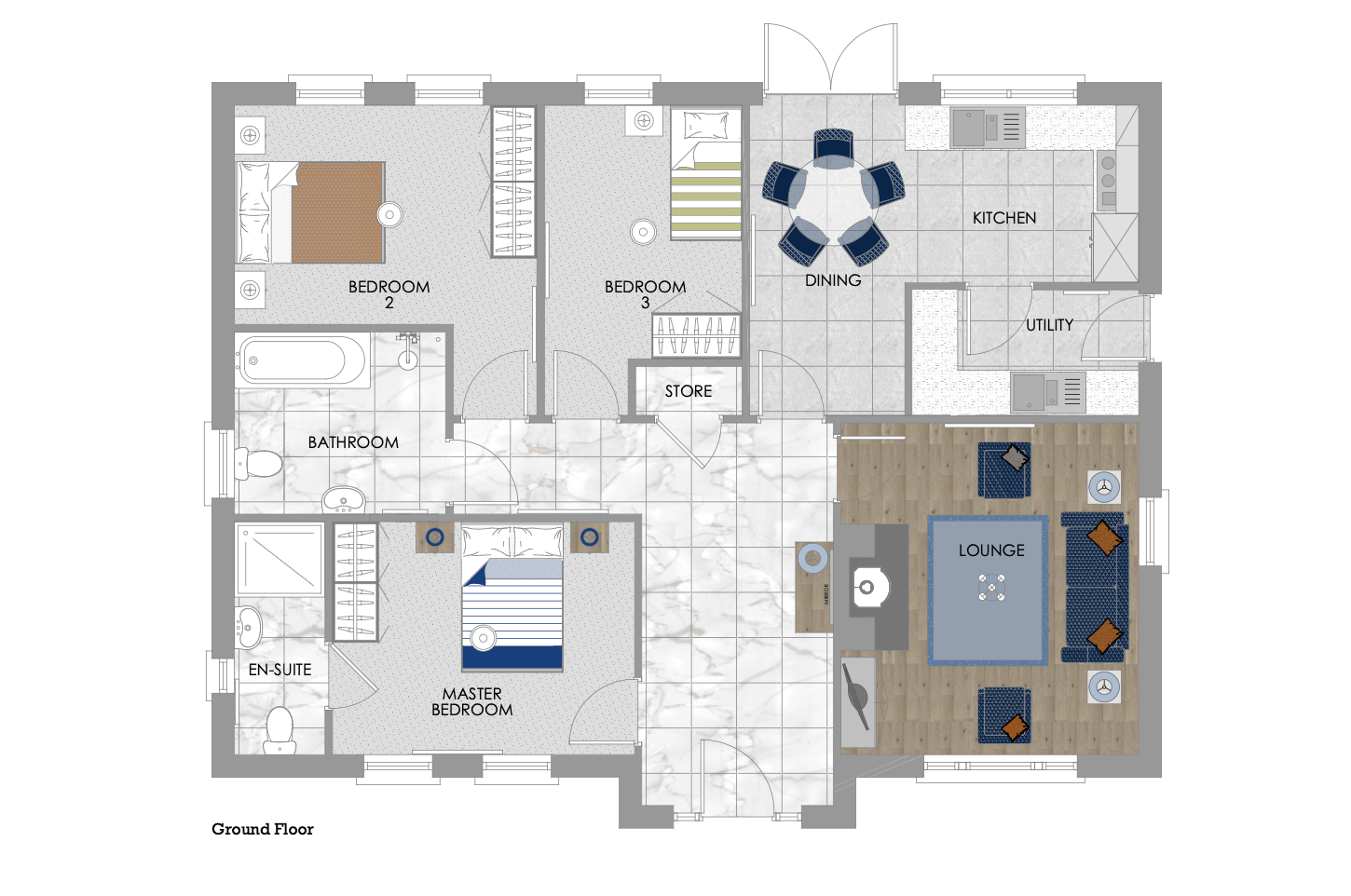 Ceramic tiling provided to hall, kitchen, dining, bathroom, en-suites, WC and utility (where applicable)