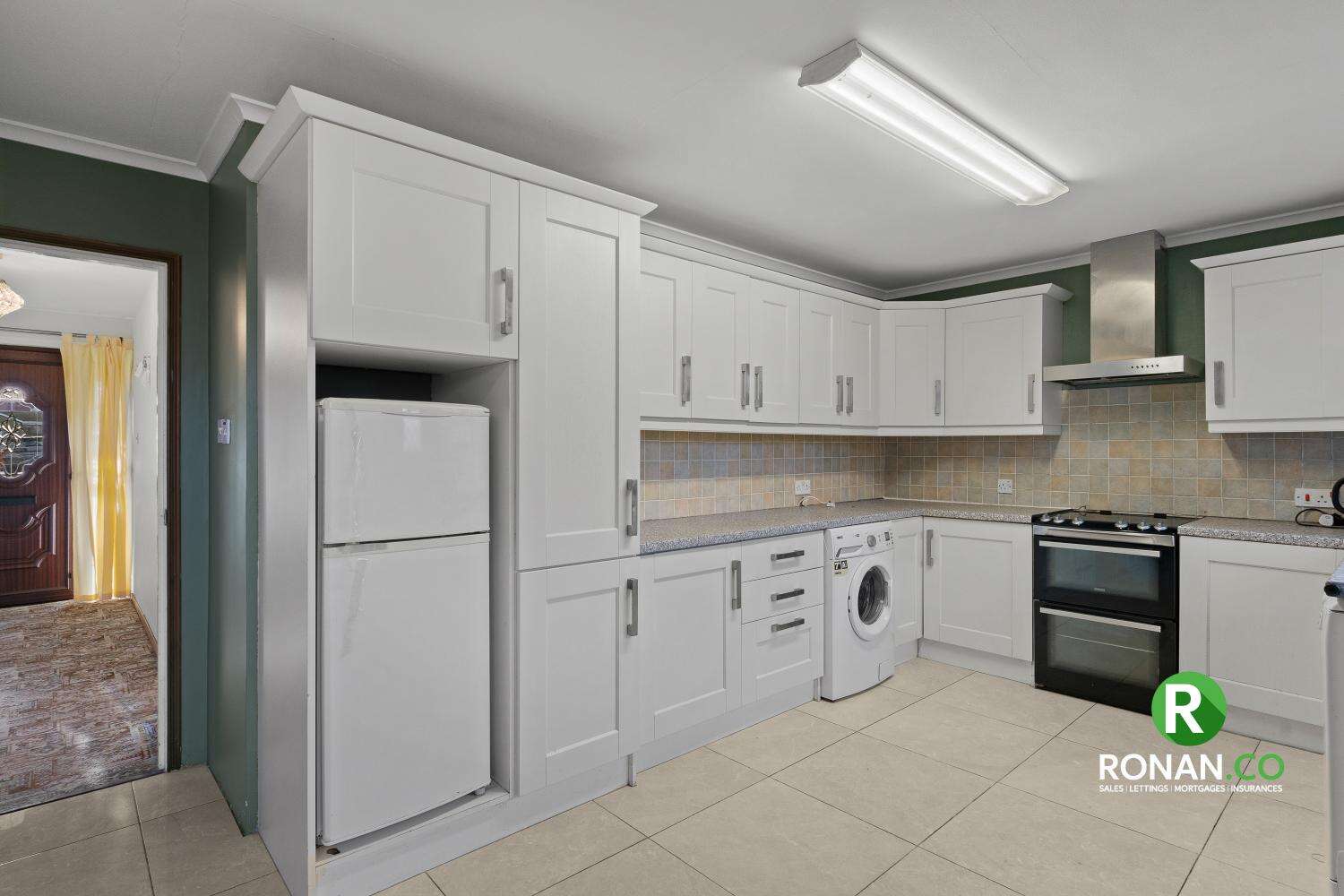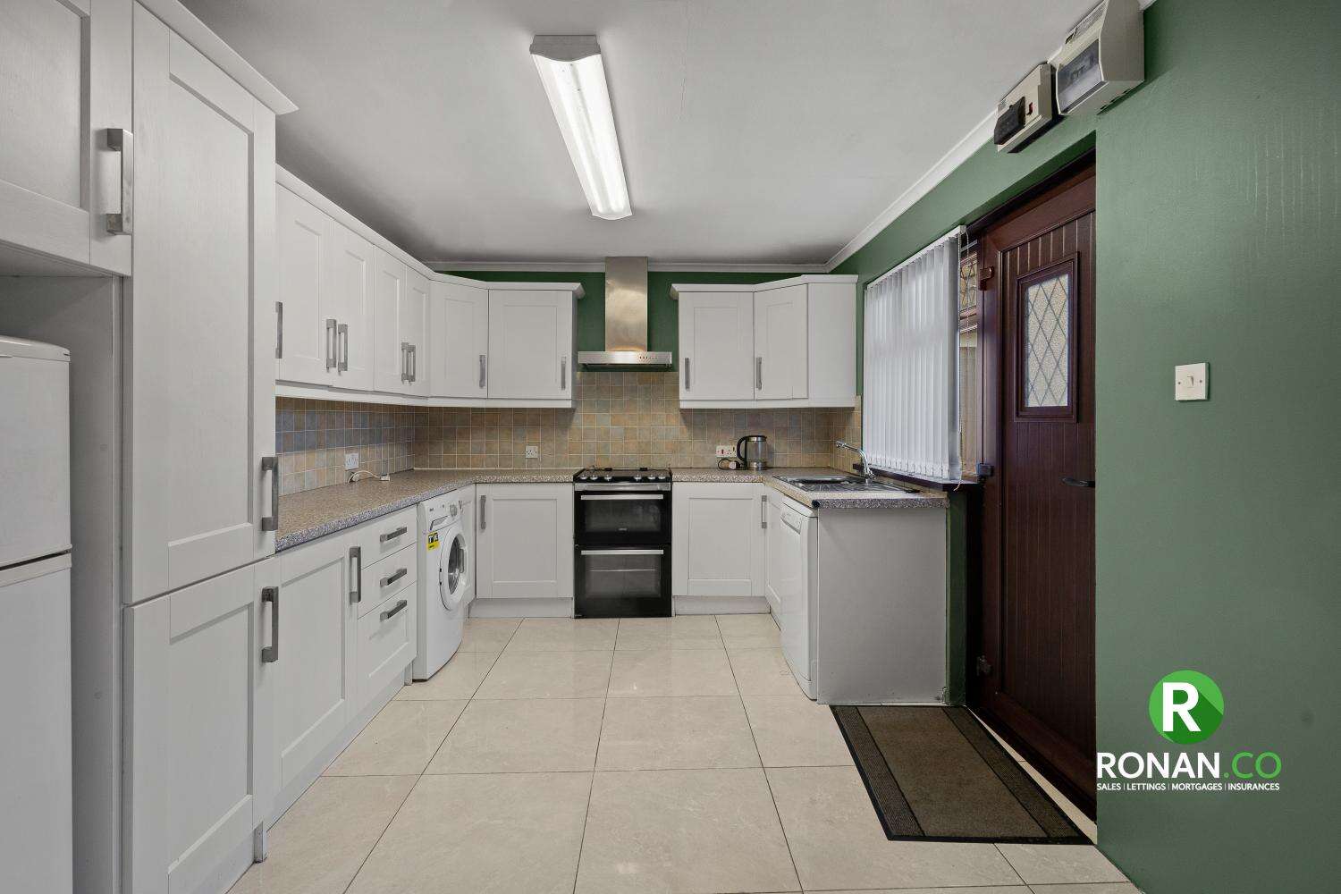 • Tiled Flooring, Tiled Walls, Electric Freestanding Cooker, Freestanding Fridge/Freezer, Freestanding Dishwasher, Plumbed for Washing Machine, Double Radiator