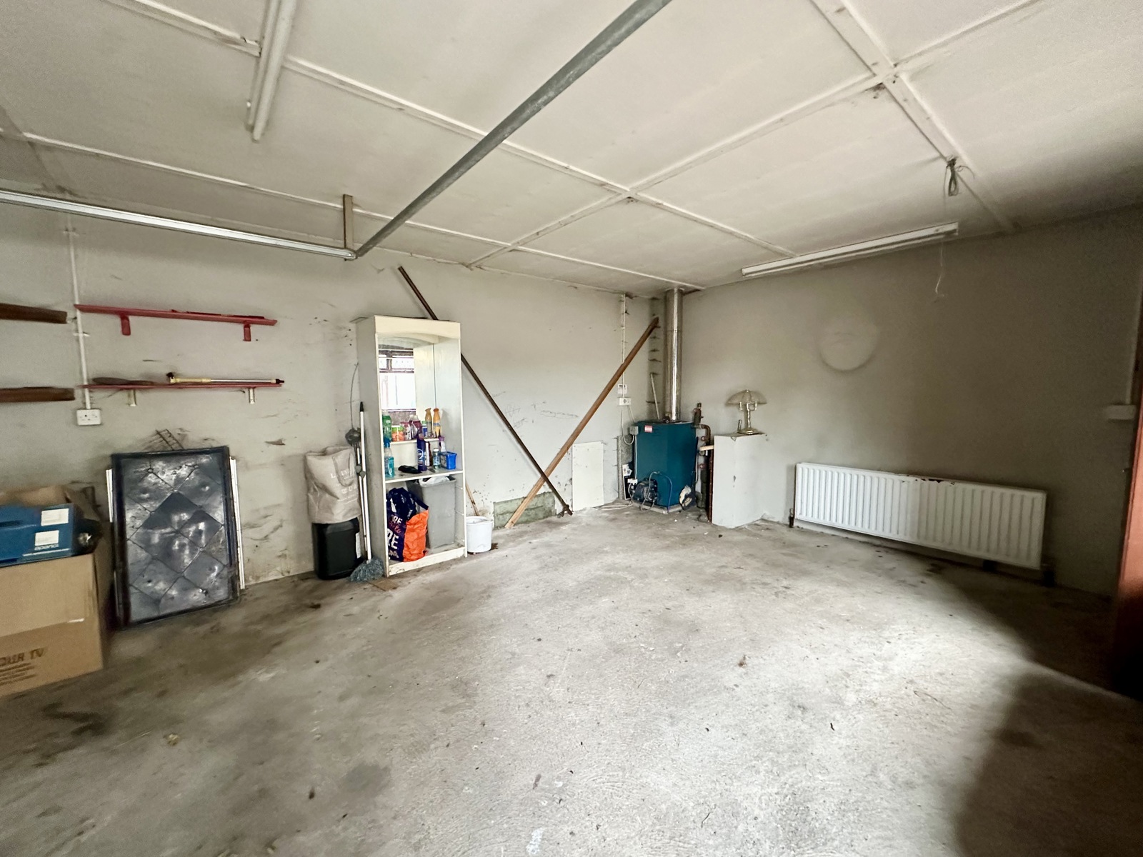 Outside, there is a garden area to the front and a concrete yard to the rear providing useful outdoor space. The property also benefits from a garage situated to the rear or side of the house, offering additional storage or workspace.