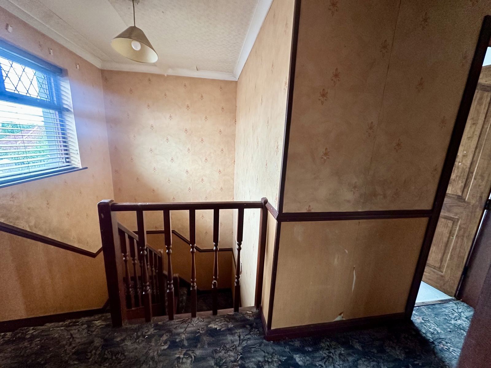 The accommodation includes a living room, kitchen area, dining room, bathroom, and three bedrooms. While the house is in need of significant modernisation, it offers good potential to be transformed into a comfortable home.