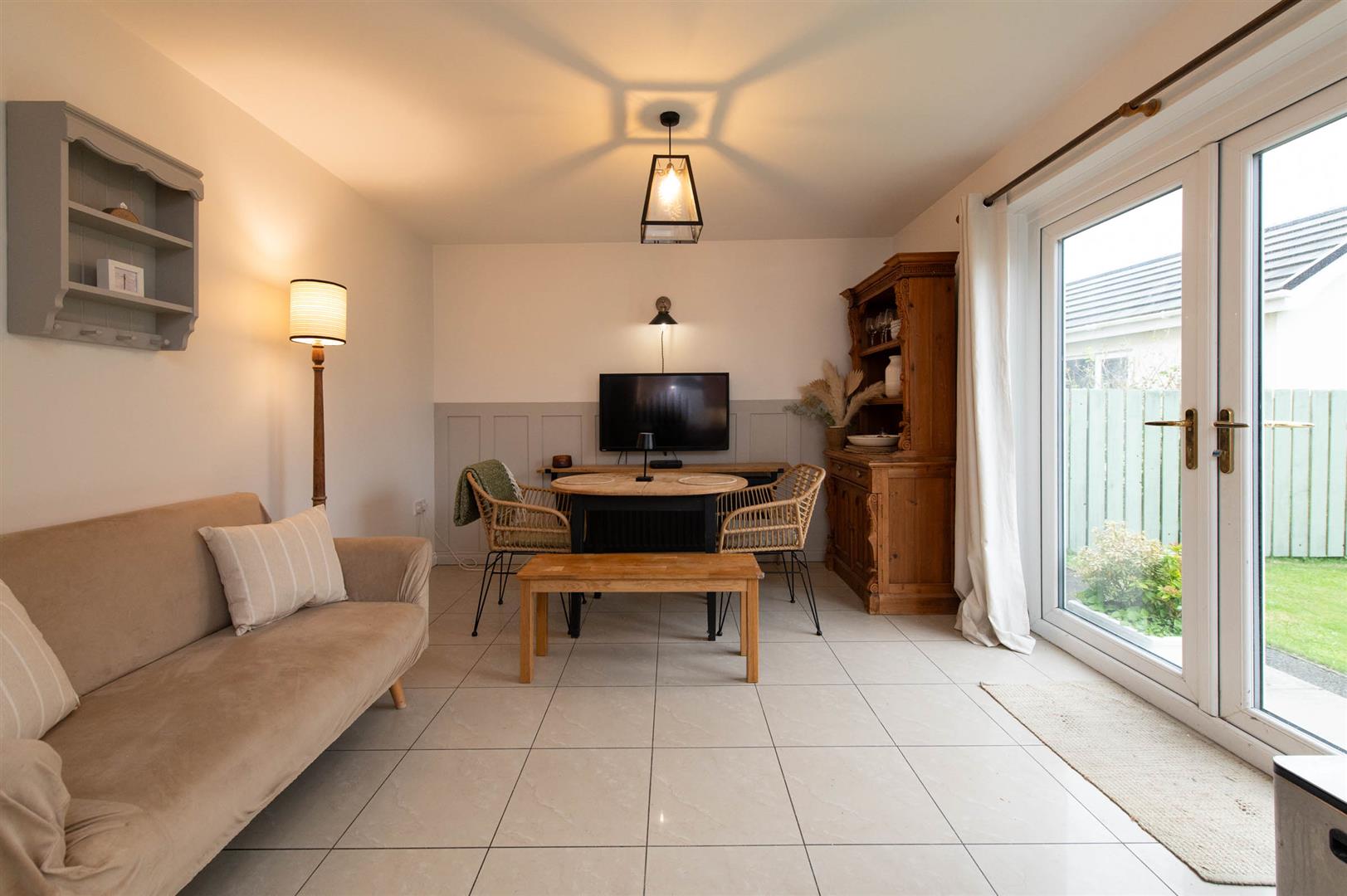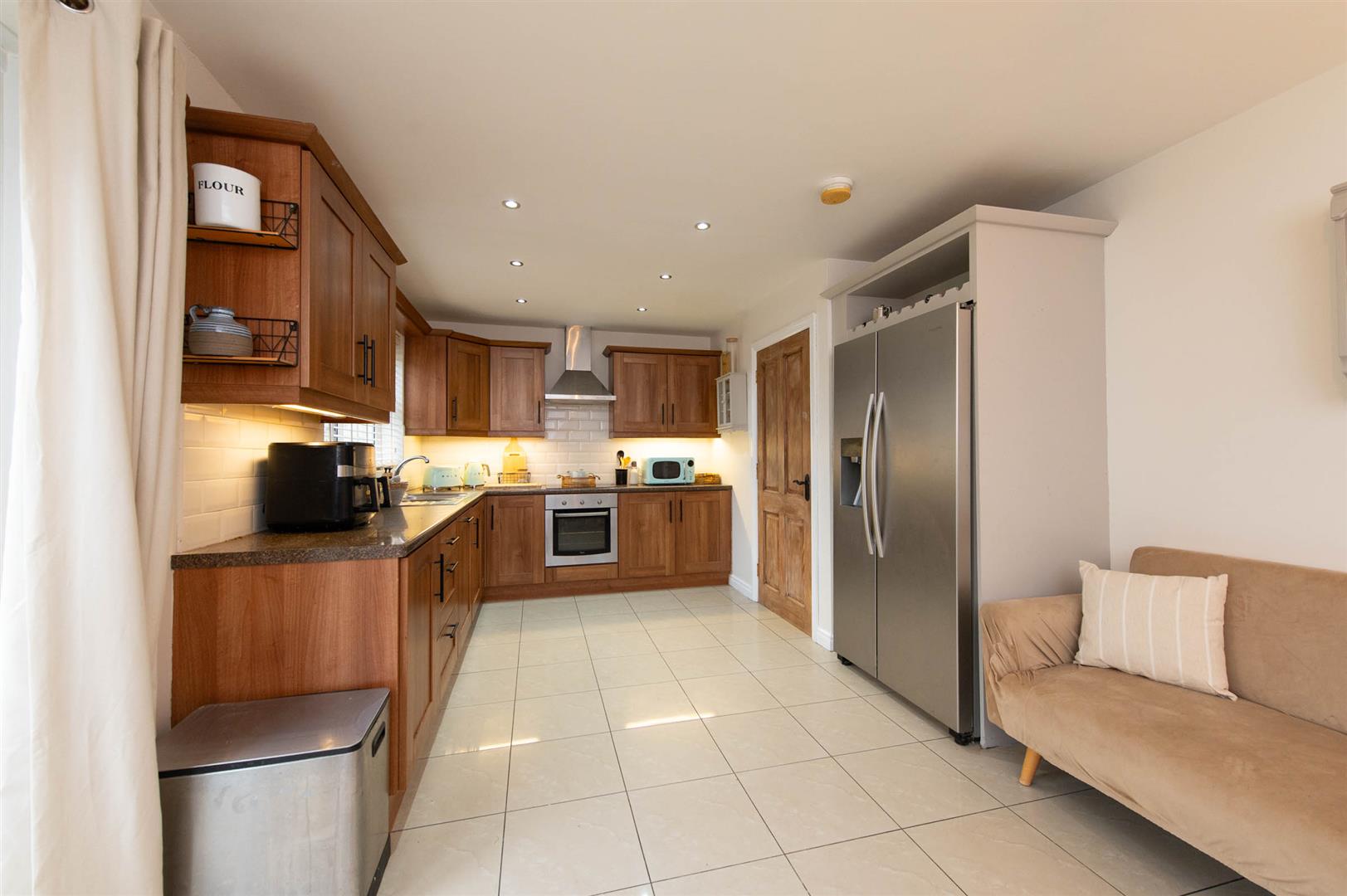 Comprising lounge with stove, spacious open plan kitchen and dining area, this home also boasts a ground floor WC and cloakroom storage.