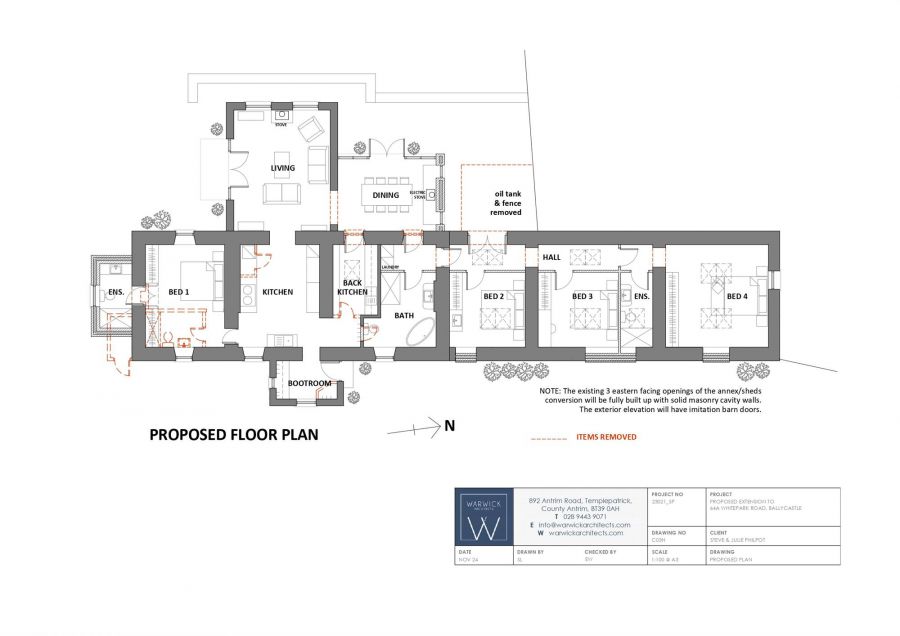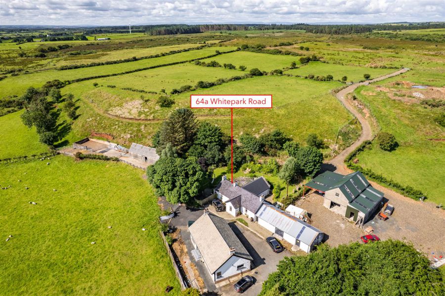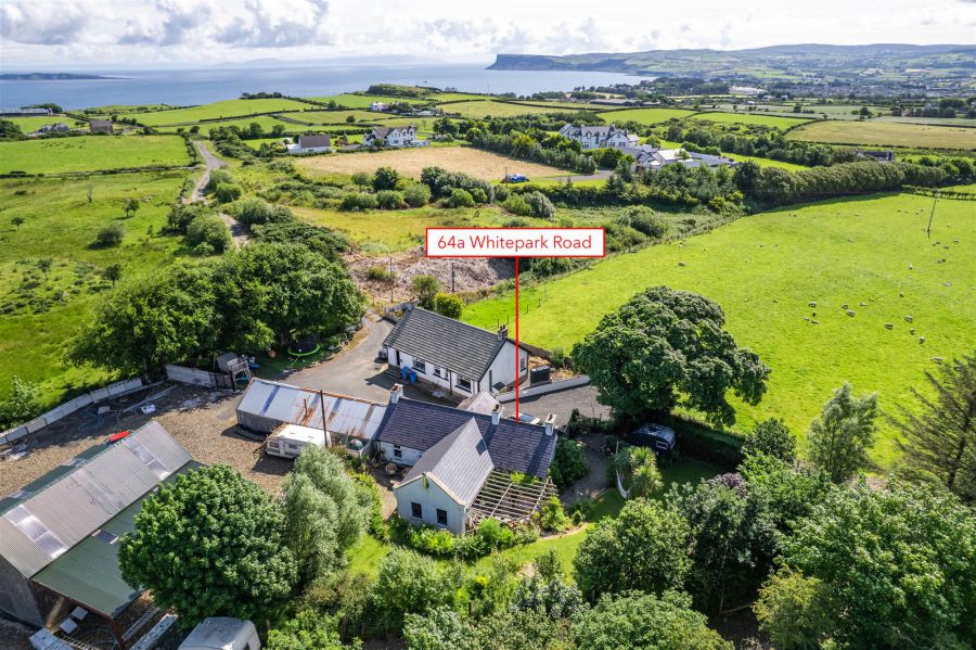 From Bushmills, head northeast on Main Street (A2) and continue onto Dunluce Road for 1.5 miles. Turn left onto Whitepark Road (B146) towards Ballintoy/Ballycastle. Drive for 7 miles, passing Ballintoy, Whitepark Bay, and Larrybane Quarry. After the Kinbane Castle turnoff, 64A Whitepark Road is on the right hand side.