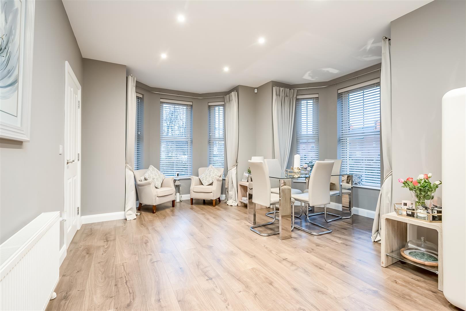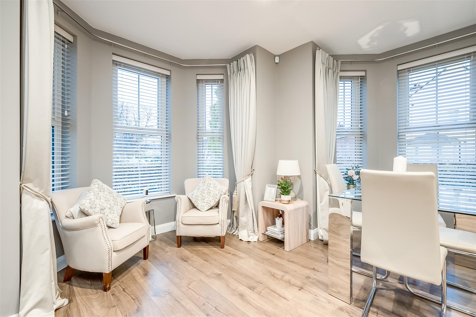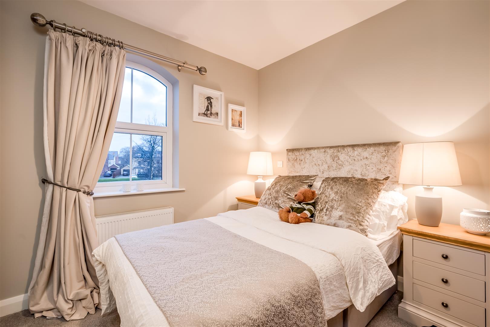 Bay window to front elevation, enjoying views towards landscaped green. Wall recessed, wood burning stove with granite hearth.