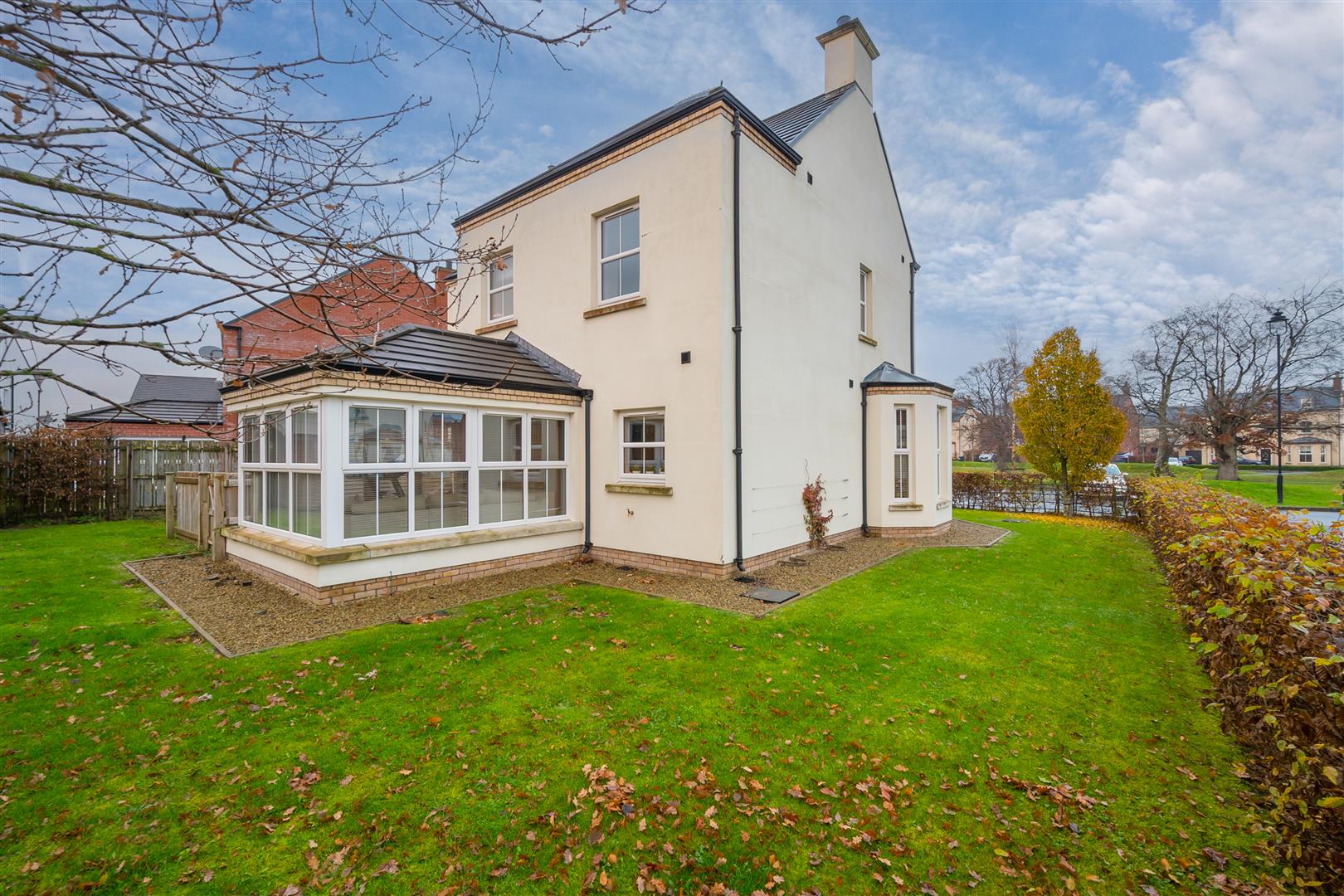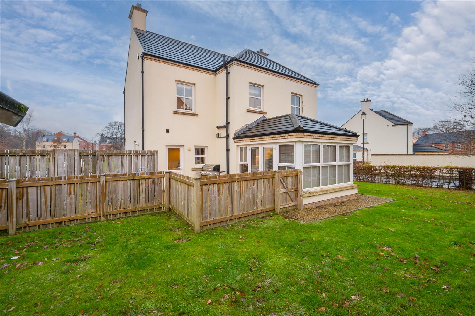 Immaculately presented, double bay fronted, family detached home occupying a prime site within the highly sought after Readers Park development, Ballyclare. The property comprises entrance hall, furnished cloakroom, lounge with wood burning stove, kitchen through dining room, sun lounge, utility room, four well proportioned first floor bedrooms, including principal en suite, and deluxe family bathroom with contemporary, white, four piece suite. Externally the property enjoys generous sized private driveway area finished in tarmac, gardens front, side and rear finished mainly in lawn, and enclosed paved patio area. Other attributes include gas heating, PVC double glazing, ex-show home specification and views over landscaped green. Early viewing strongly recommended.