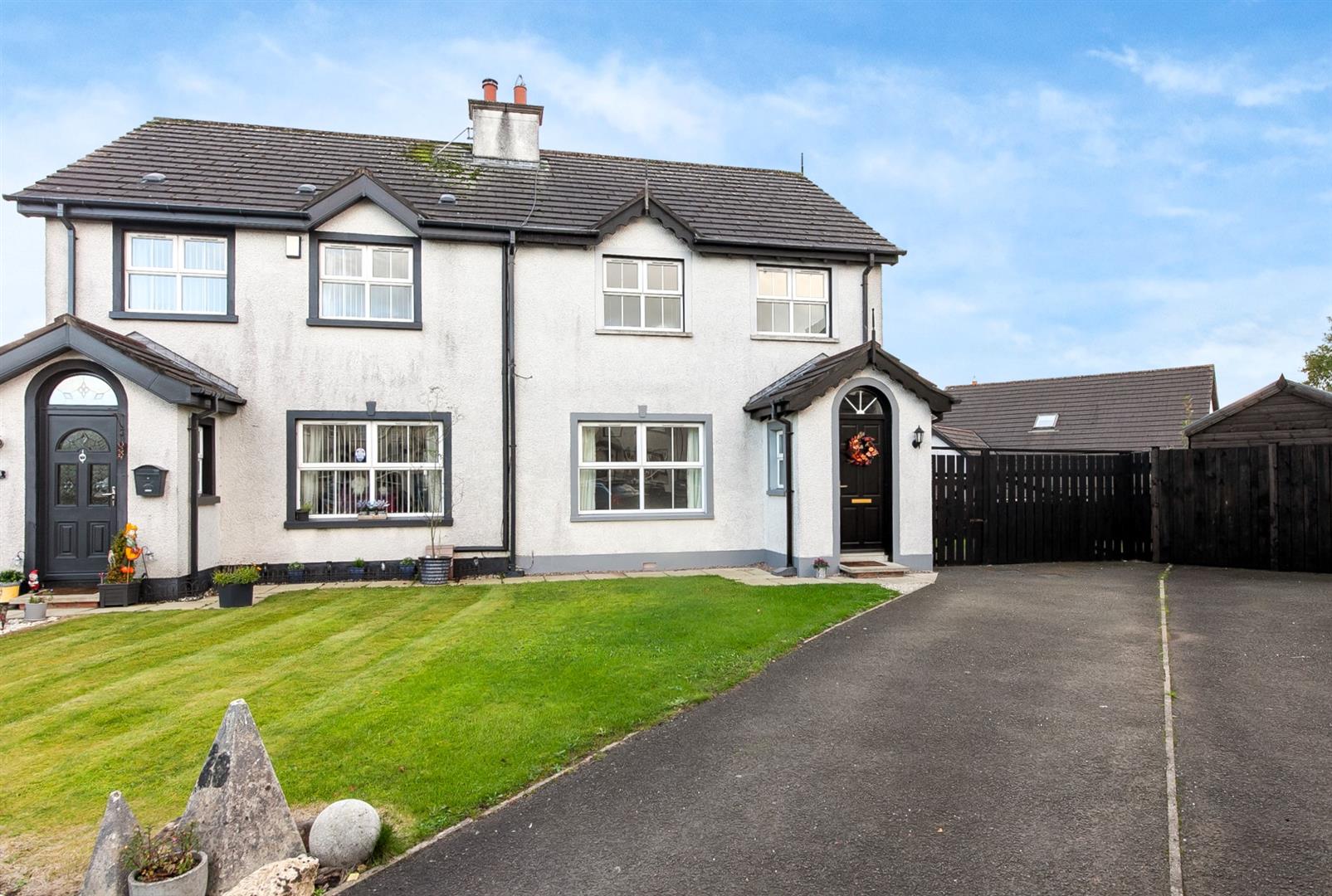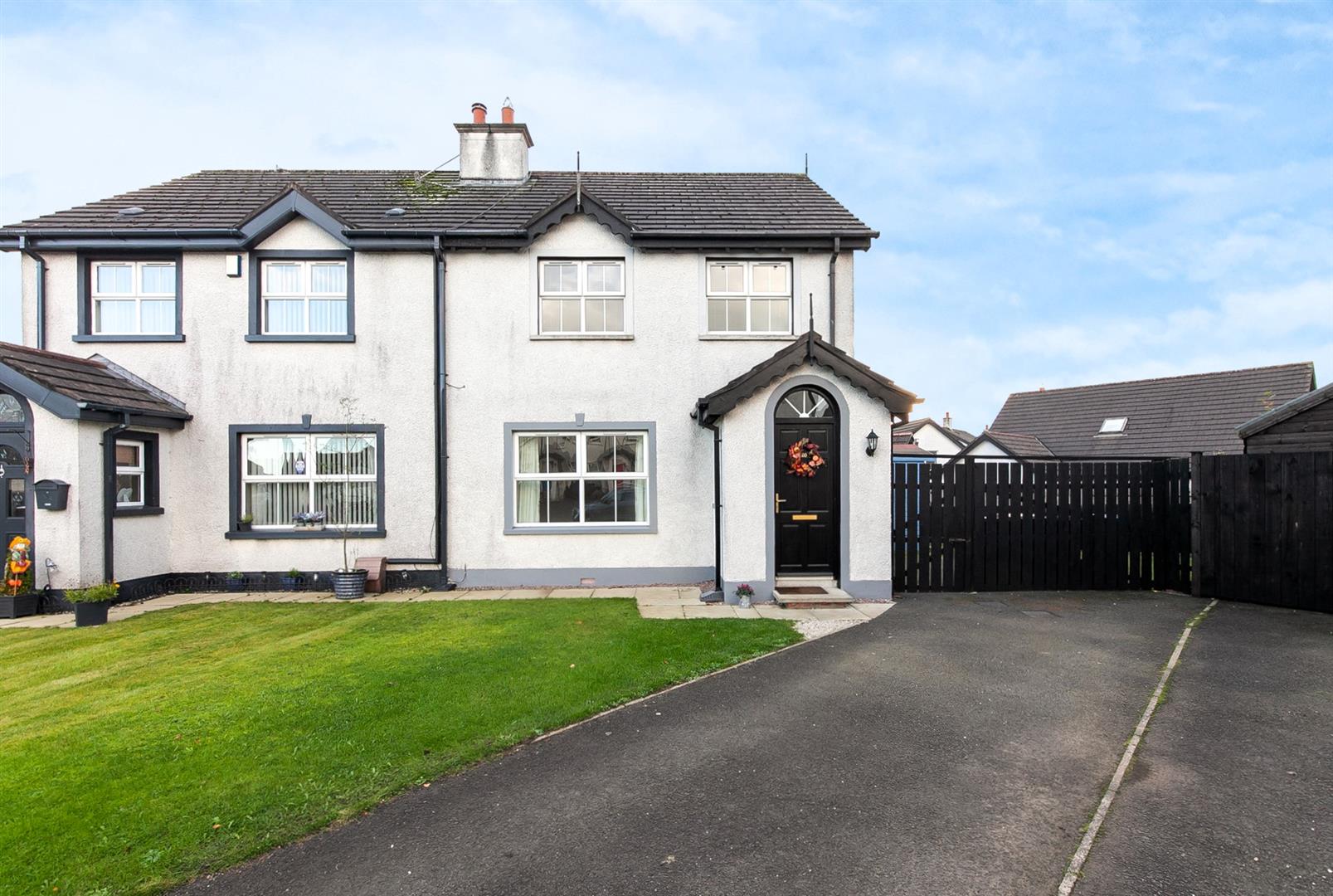 Immaculately presented, three bedroom, semi detached home with generous sized private driveway and fully enclosed rear garden, occupying an end of cul de sac position situated within the popular Huntingdale development, Doagh Road, Ballyclare.