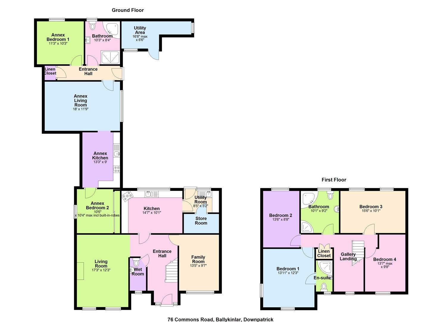 The property is further enhanced with a separate entrance to the ground floor annex, comprising two double bedrooms, living room, bathroom, kitchen and utility area.