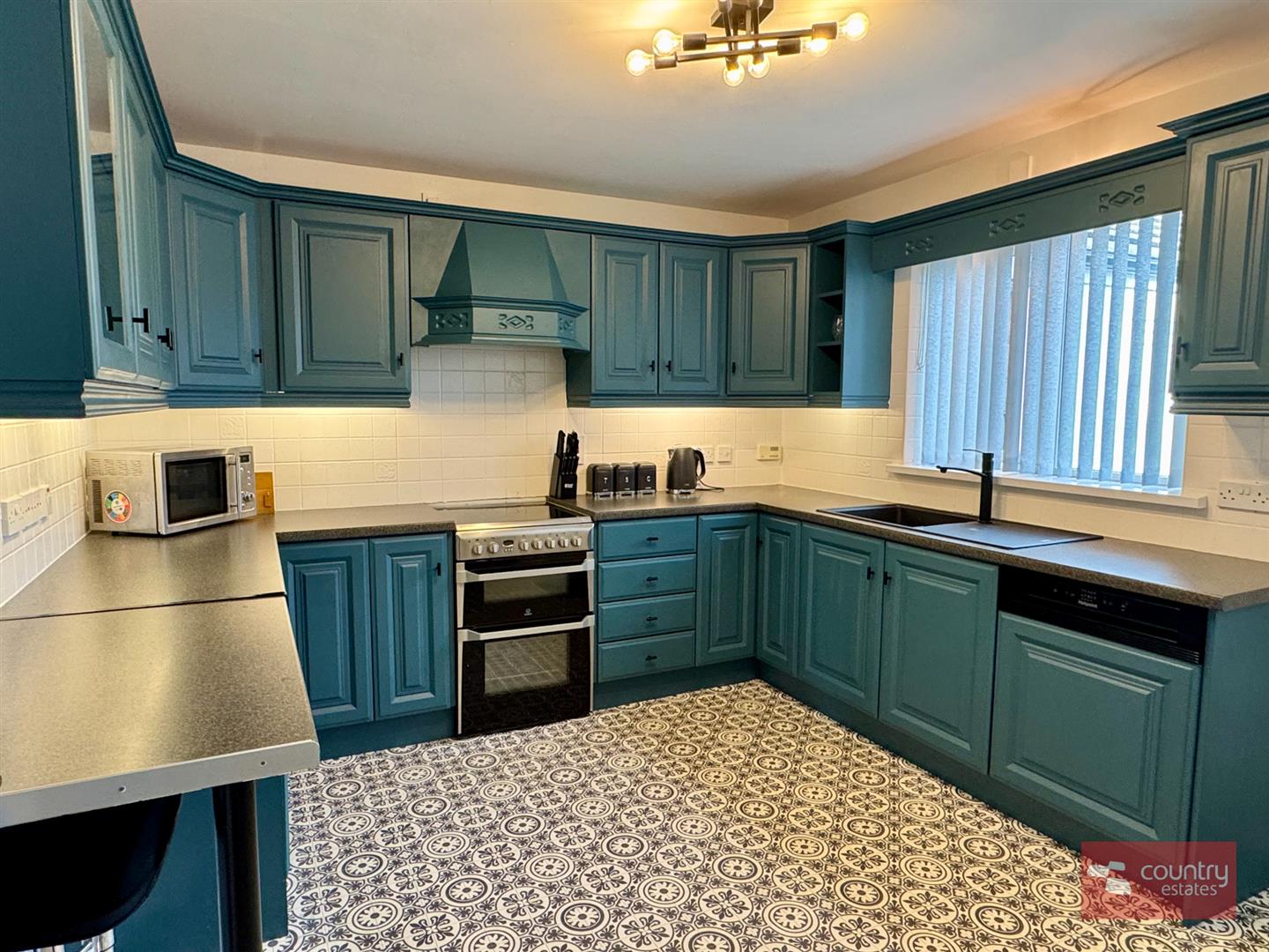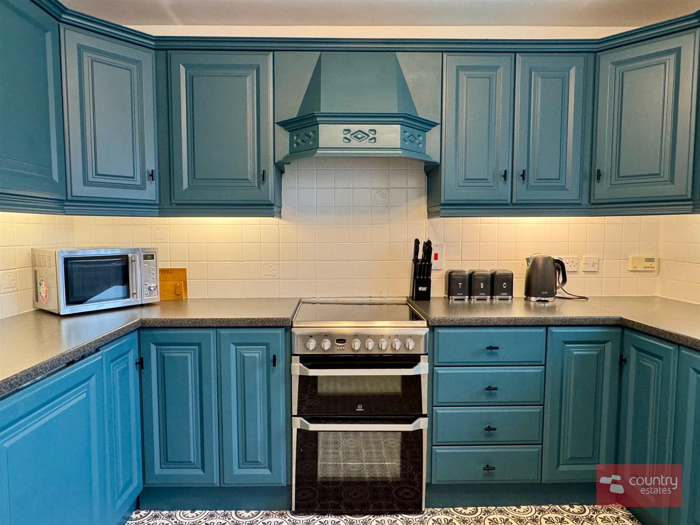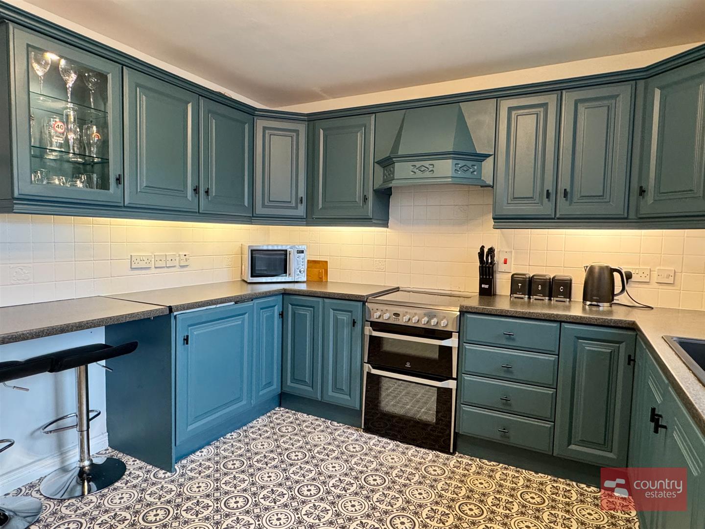 Equipped with a comprehensive range of high and low level fitted units with contrasting work services coordinating colour coded Franke single drainer sink unit with mono block tap. Space for freestanding cooker recessed overhead extractor fan housed in matching canopy. Glass display cabinet. Breakfast bar style return. Integrated dishwasher and fridge. PVC double glazed stable door to hard landscaped rear garden.