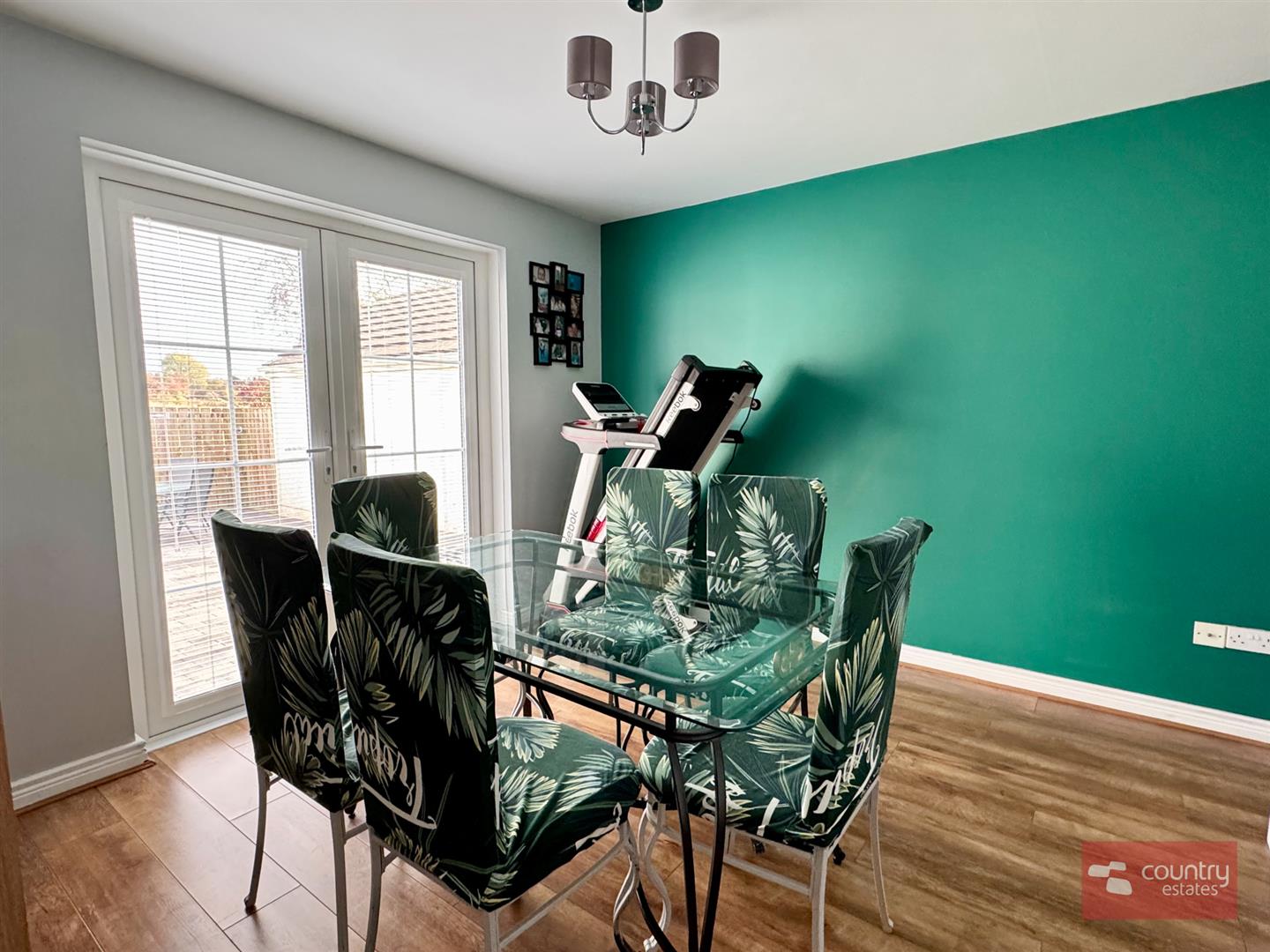 Quality walnut effect laminate plank flooring. Twin PVC double glazed French doors to rear garden.