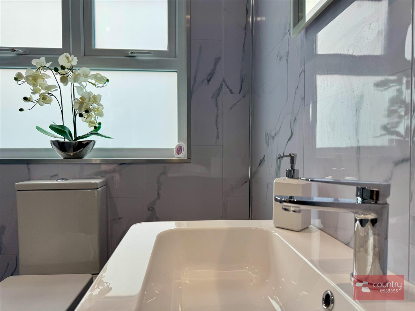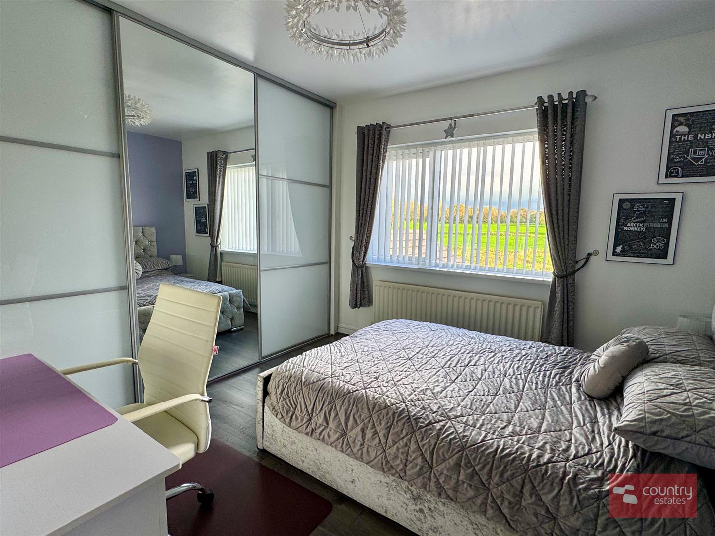 Approx. Enjoying far reaching rural views over surrounding open countryside . Bespoke fitted modern three bay sliderobe with mirrored centre with integrated box shelving and hanging space. Quality Grey coloured laminate plank flooring.