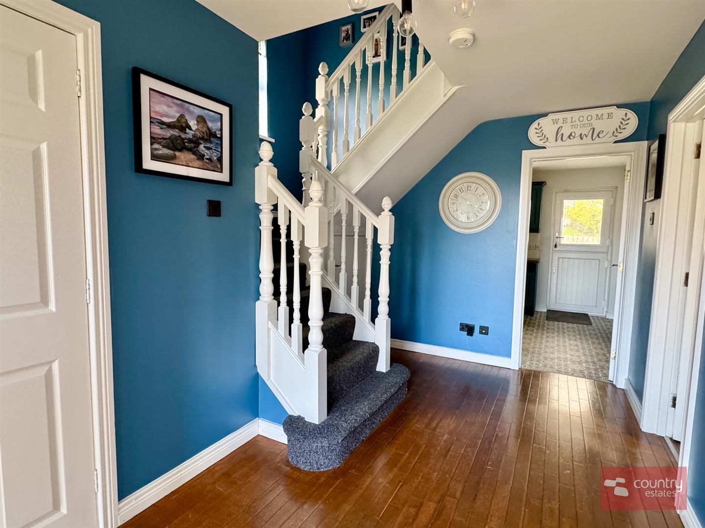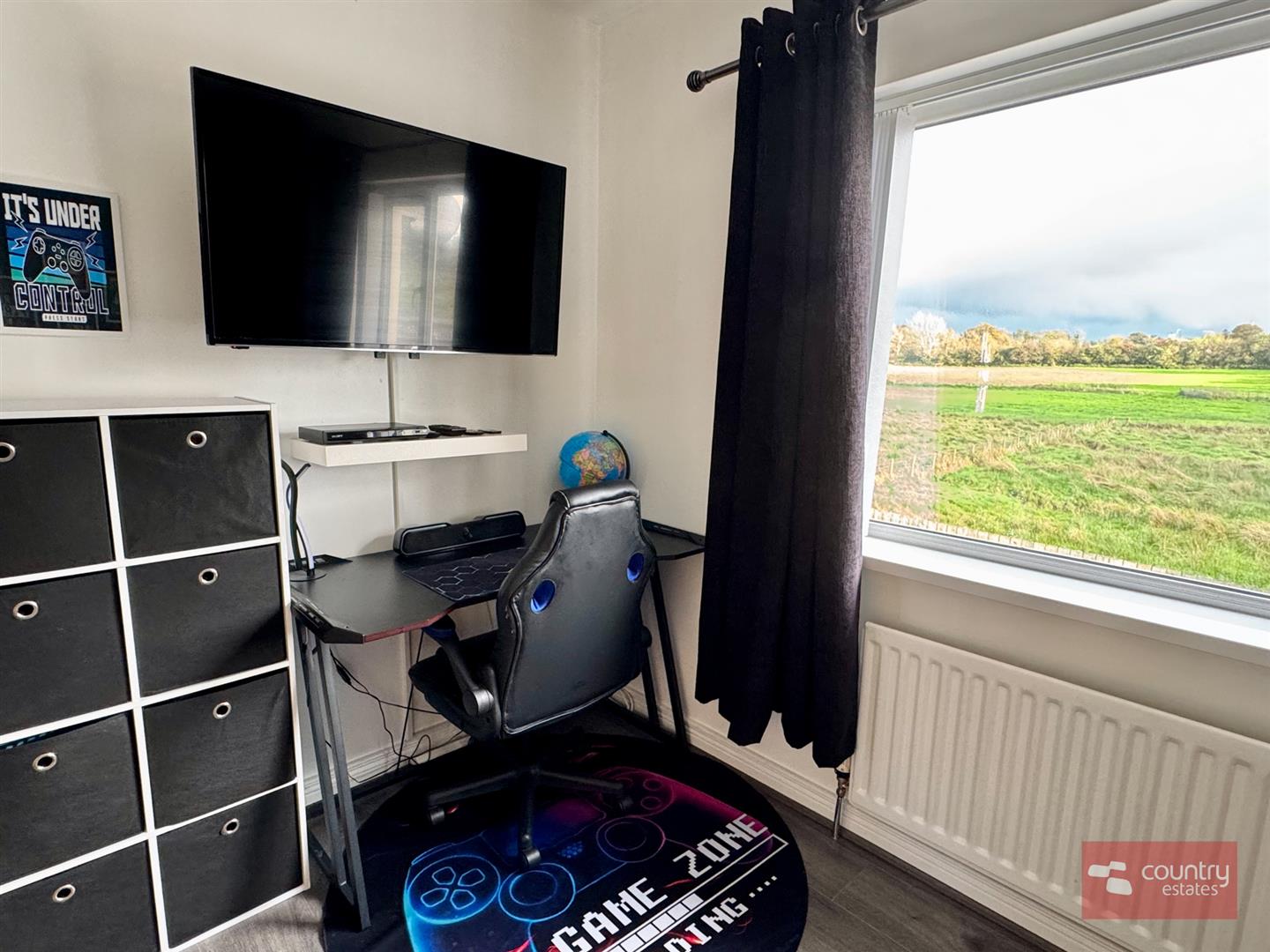 Private hard landscaped low maintenance garden to rear. Screened by perimeter fence and bordered to rear by open countryside. A perfect space for family barbecues.