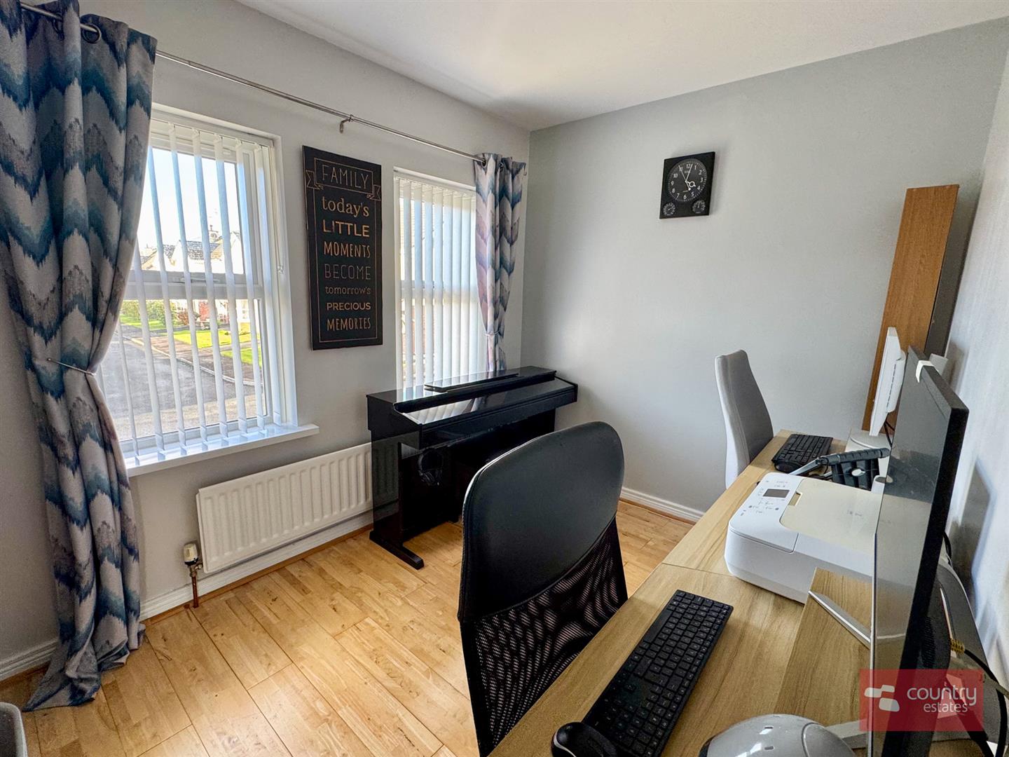 Dual window aspect. Presently used as home office. Exposed hardwood flooring.