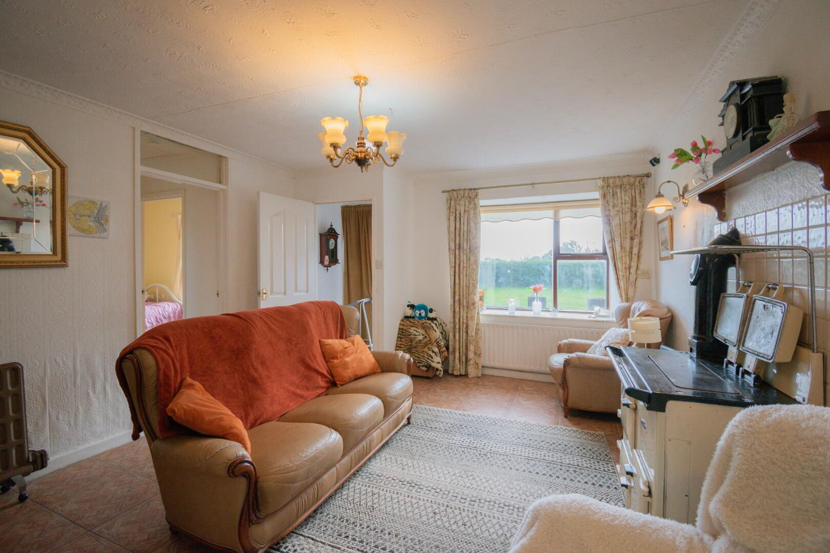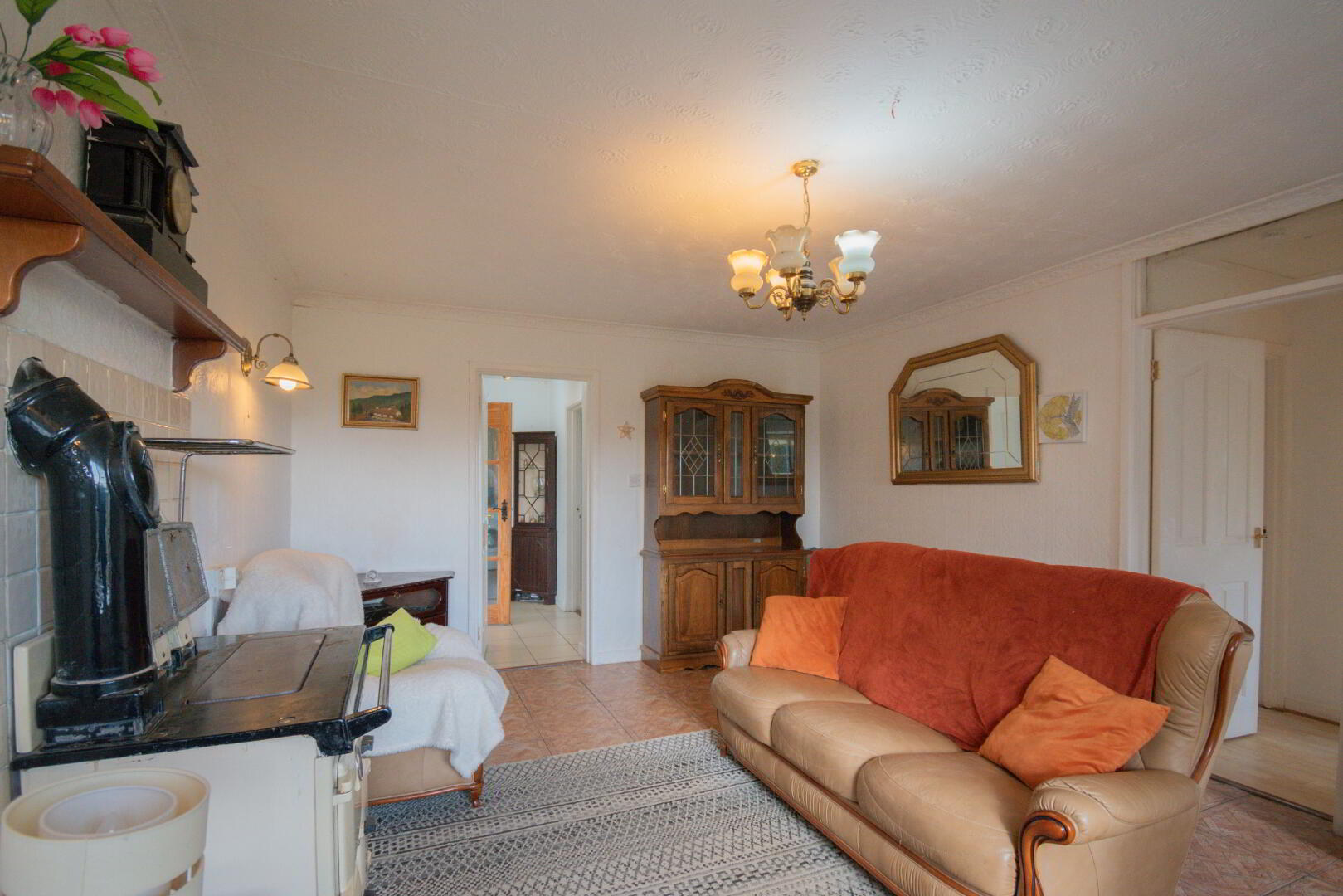 Internally, the property consists of a porch opening to the main living space with Rayburn Stove, front hall with two bedrooms, rear hall, bathroom, kitchen / dining area and conservatory. Outside, the property is approached by a long, shared laneway and is surrounded in generous gardens presently laid in lawns.