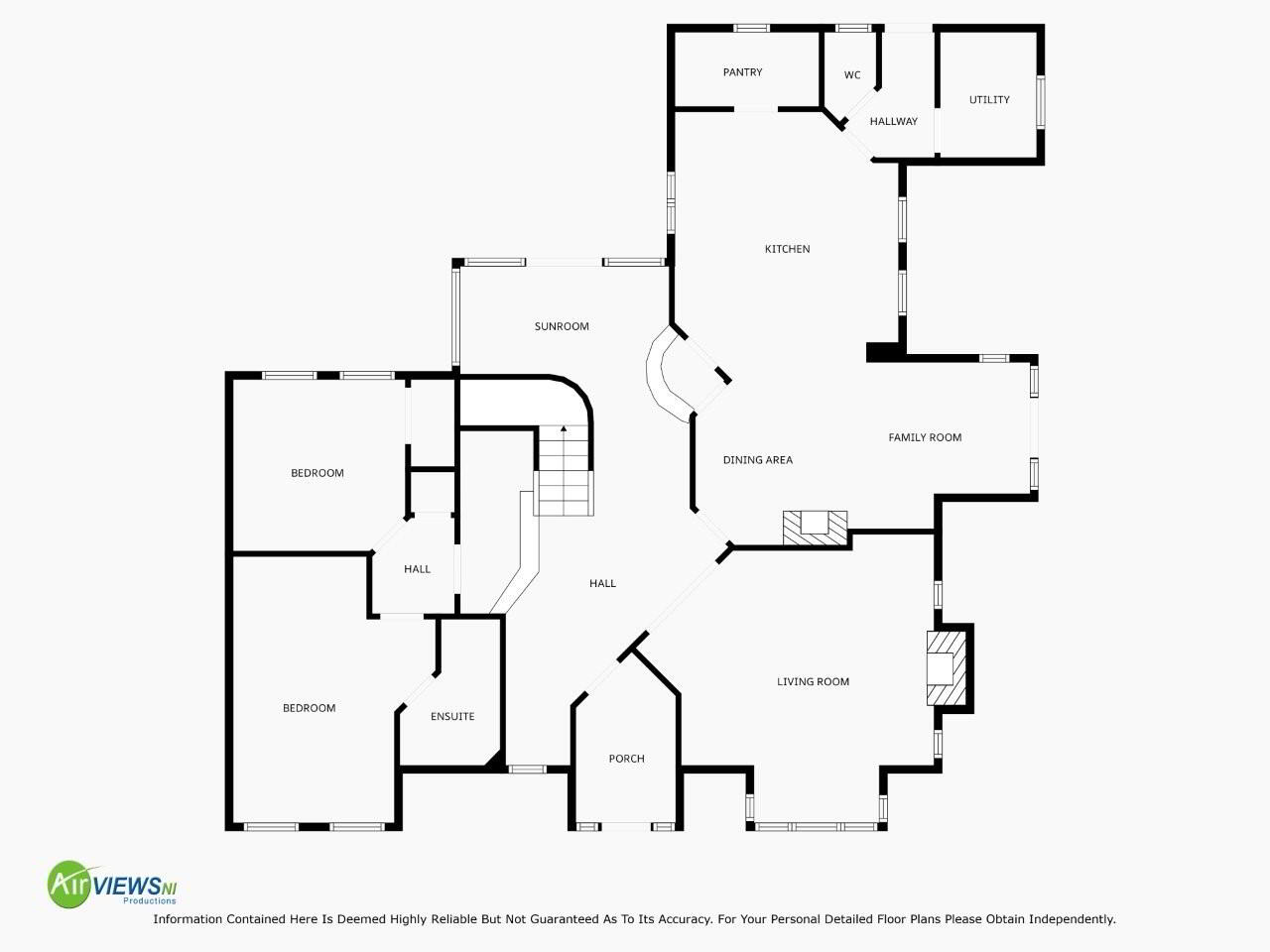 The accommodation within encompasses an entrance porch and an open plan hall featuring a staircase with tiered galleried landing overlooking a sun room which takes full advantage of the south westerly aspect overlooking the enclosed rear garden. In addition, there is a generous lounge with inglenook fireplace completed in Sandstone while a more informal family/dining area with multifuel stove leads to the kitchen. This area enhanced with a vaulted ceiling and roof light includes a range of cabinetry finished in maple with integrated appliances, granite worksurfaces and an island . A walk-in pantry provides additional useful storage and there is a rear hall, utility and WC.