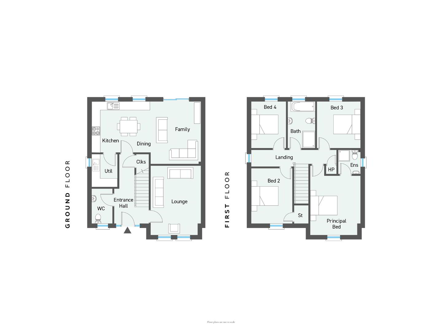 • Choice of tiled floor to hall, kitchen, dining, family, utility, bathroom, ensuite and wc from nominated supplier