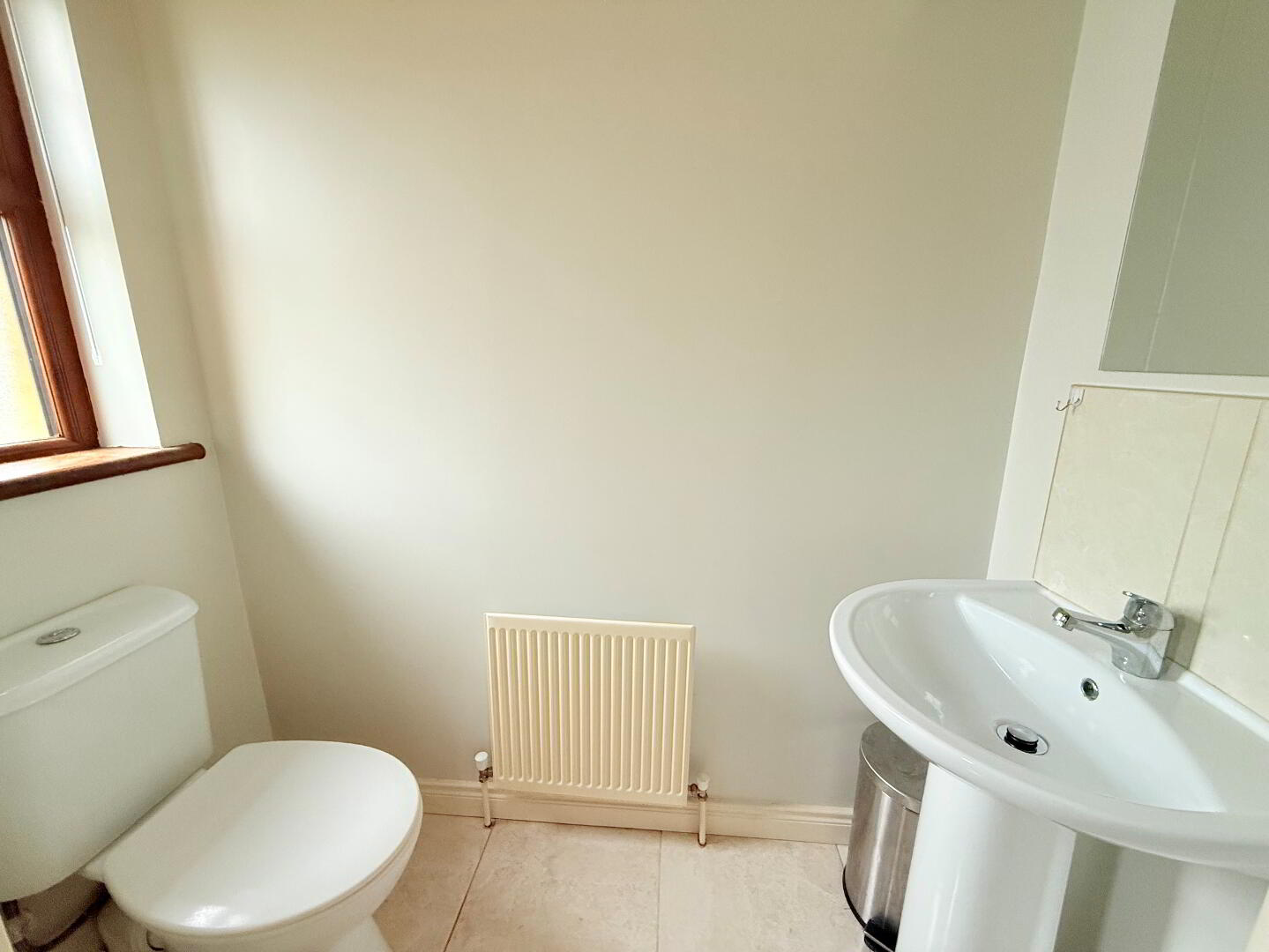 uPVC double glazed window to front, low flush wc, pedestal wash hand basin, tiled splashback, tiled flooring, radiator