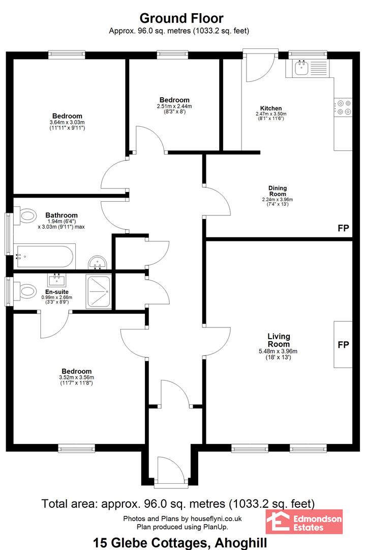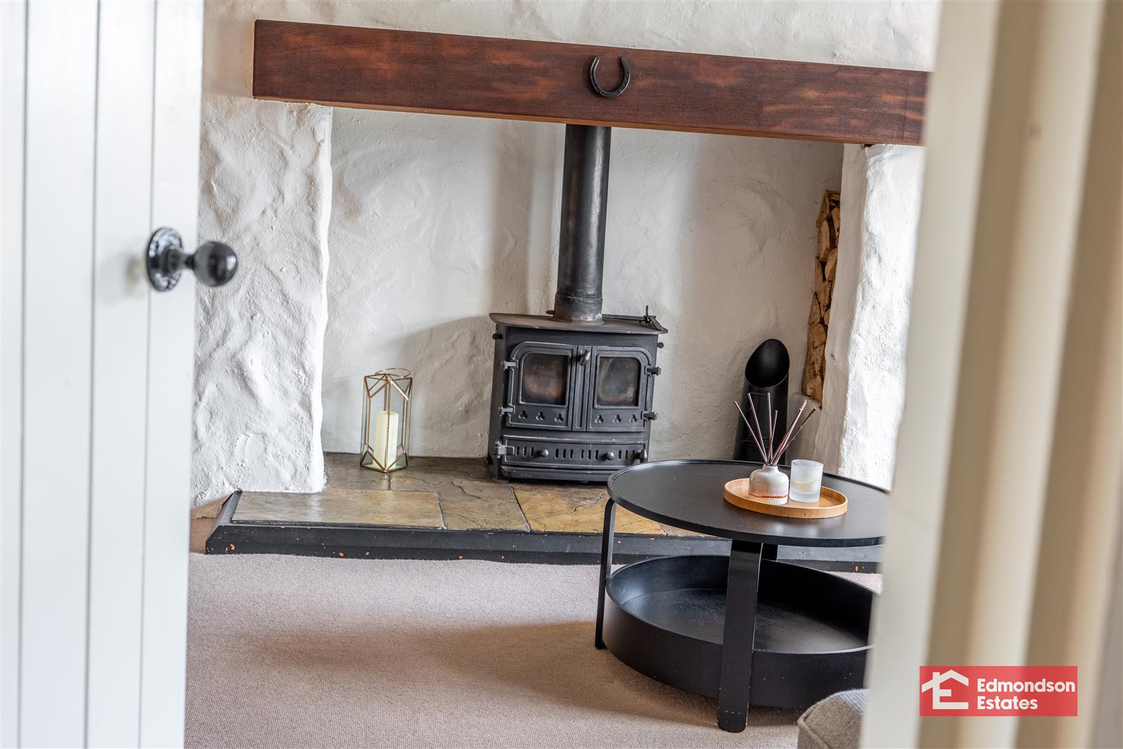 Internally the property comprises an entrance porch, entrance hall, lounge with wood burning stove, kitchen with informal dining area, thee bedrooms with principal en-suite and family bathroom.