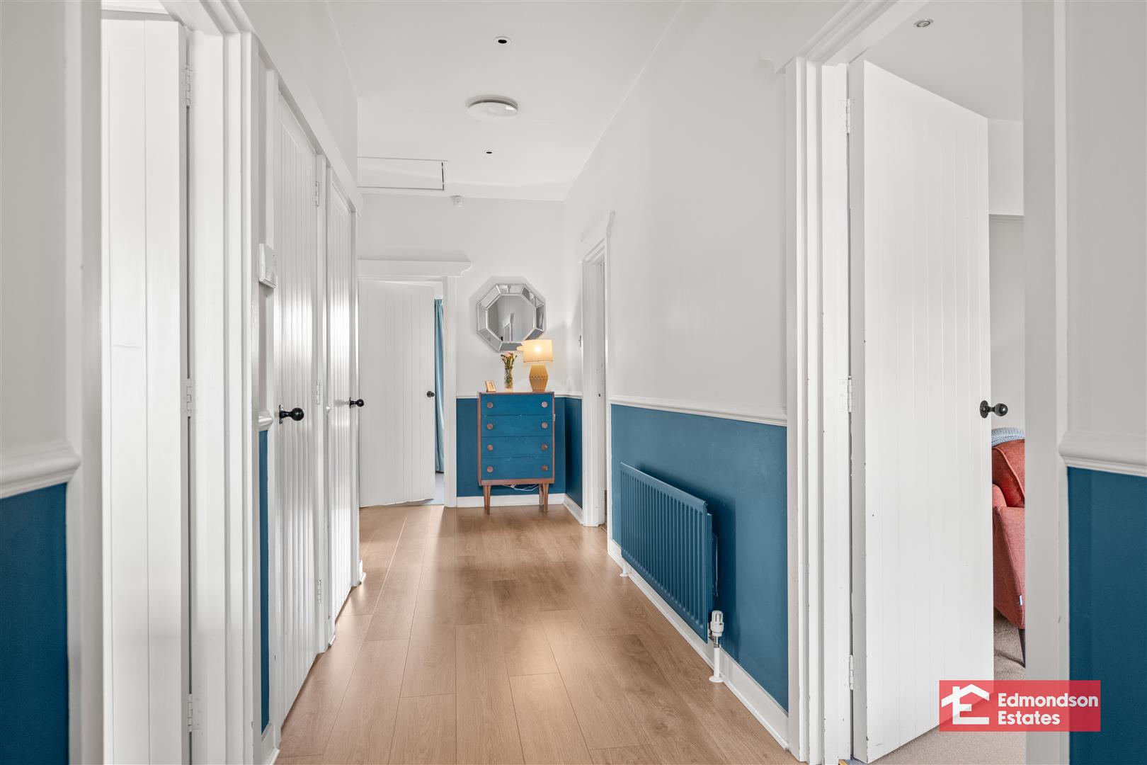 Wood laminate floor covering. Access to hot press and store. Access to roof space. Alarm panel. Decorative dado rail.