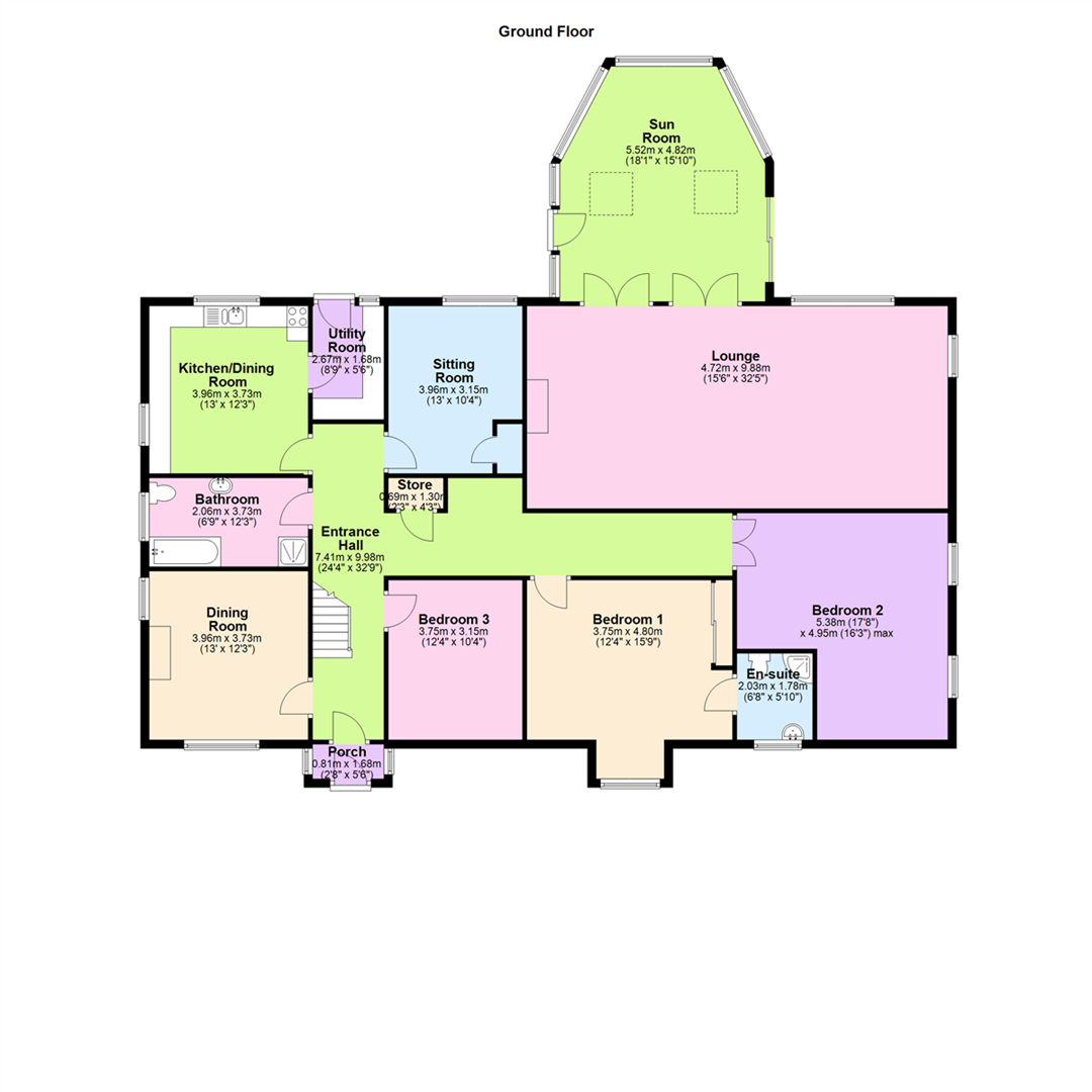 Sun Room 18'1" X 15'10" (5.52m X 4.82m)