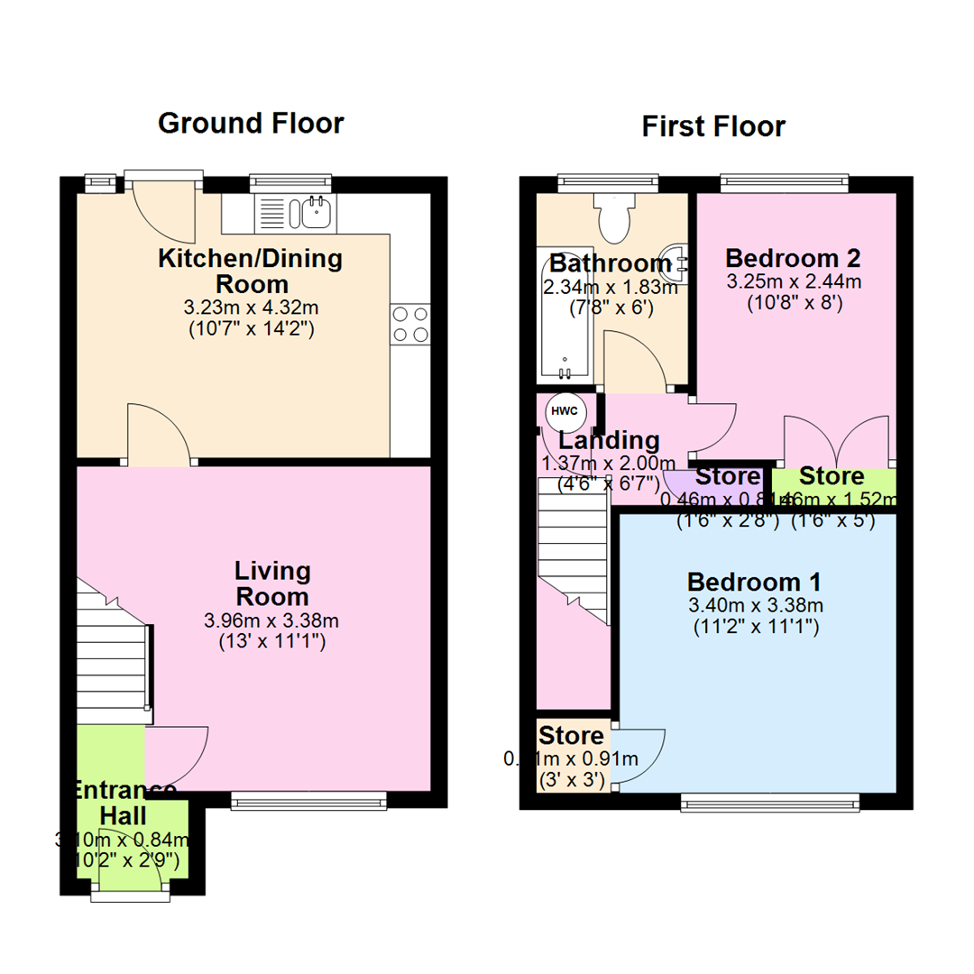 Bedroom 2 10'8" X 8'0" (3.25m X 2.44m)