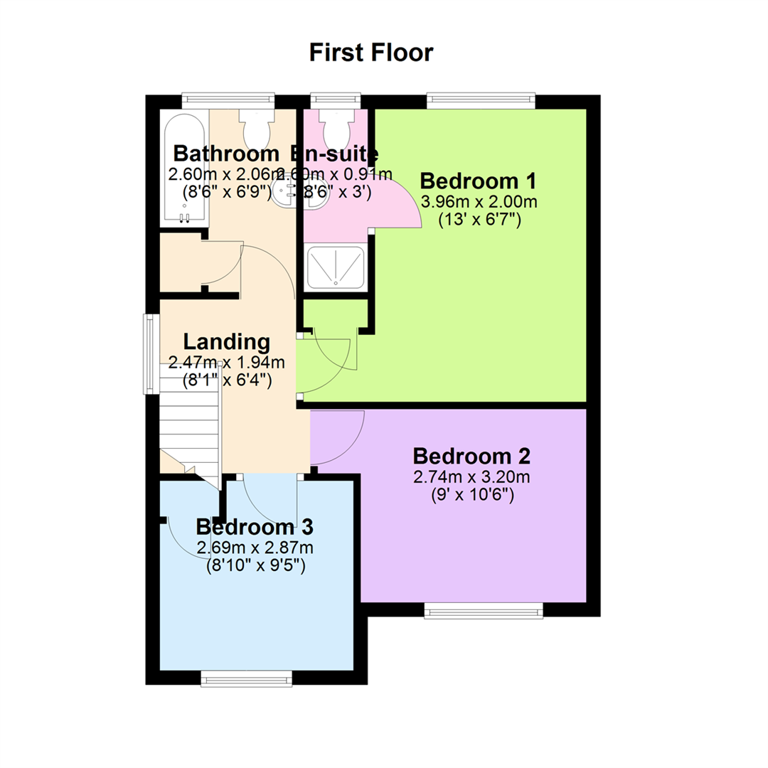 En-suite 8'6" X 3'0" (2.60m X 0.91m)