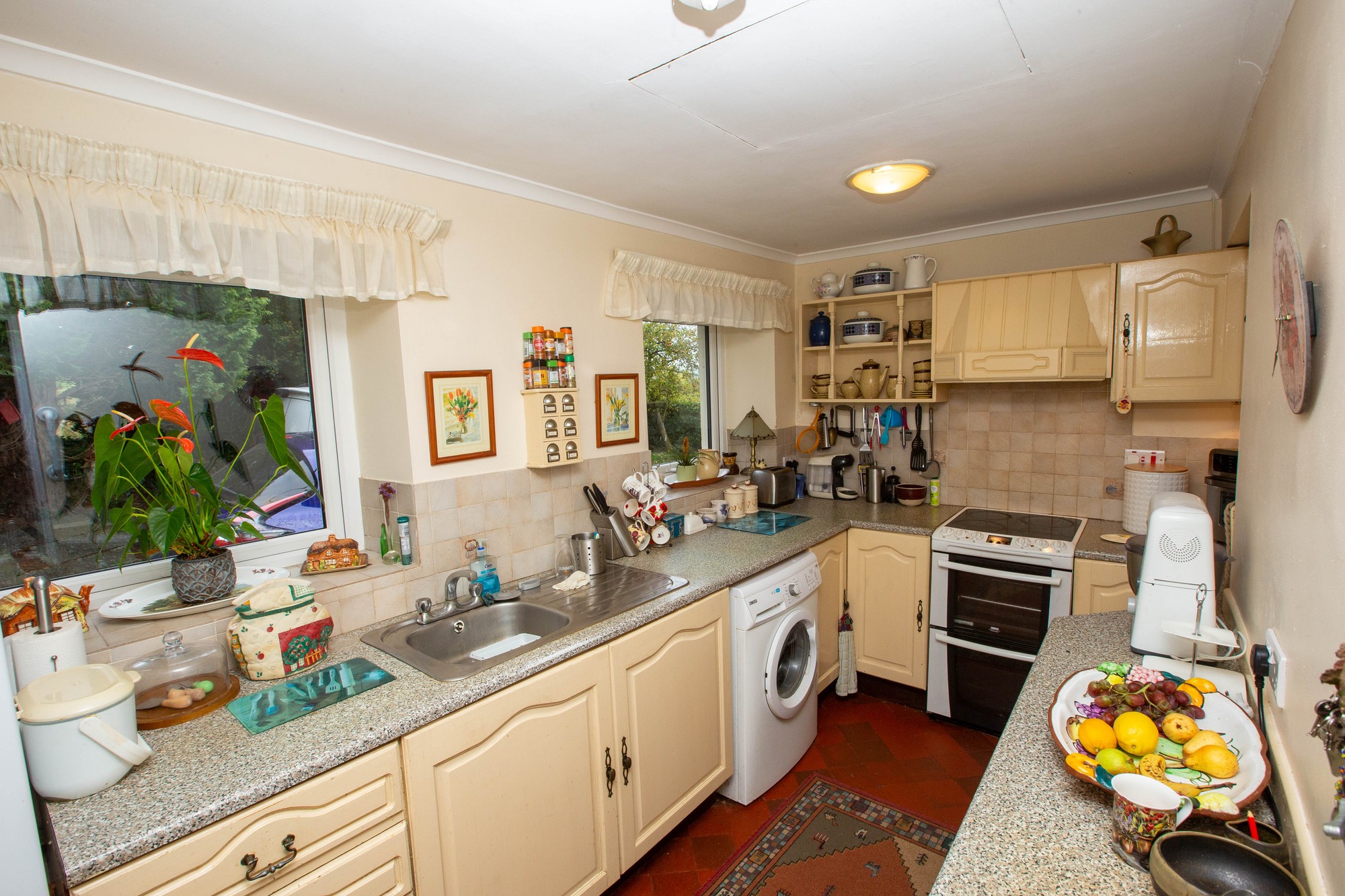 Kitchen 13’0” x 6’6” (3.96m x 1.98m) - Range of high and low level fitted units, laminate worktops, breakfast bar, stainless steel sink unit, extractor canopy, plumbing for washing machine, part tiled walls, tiled floor.