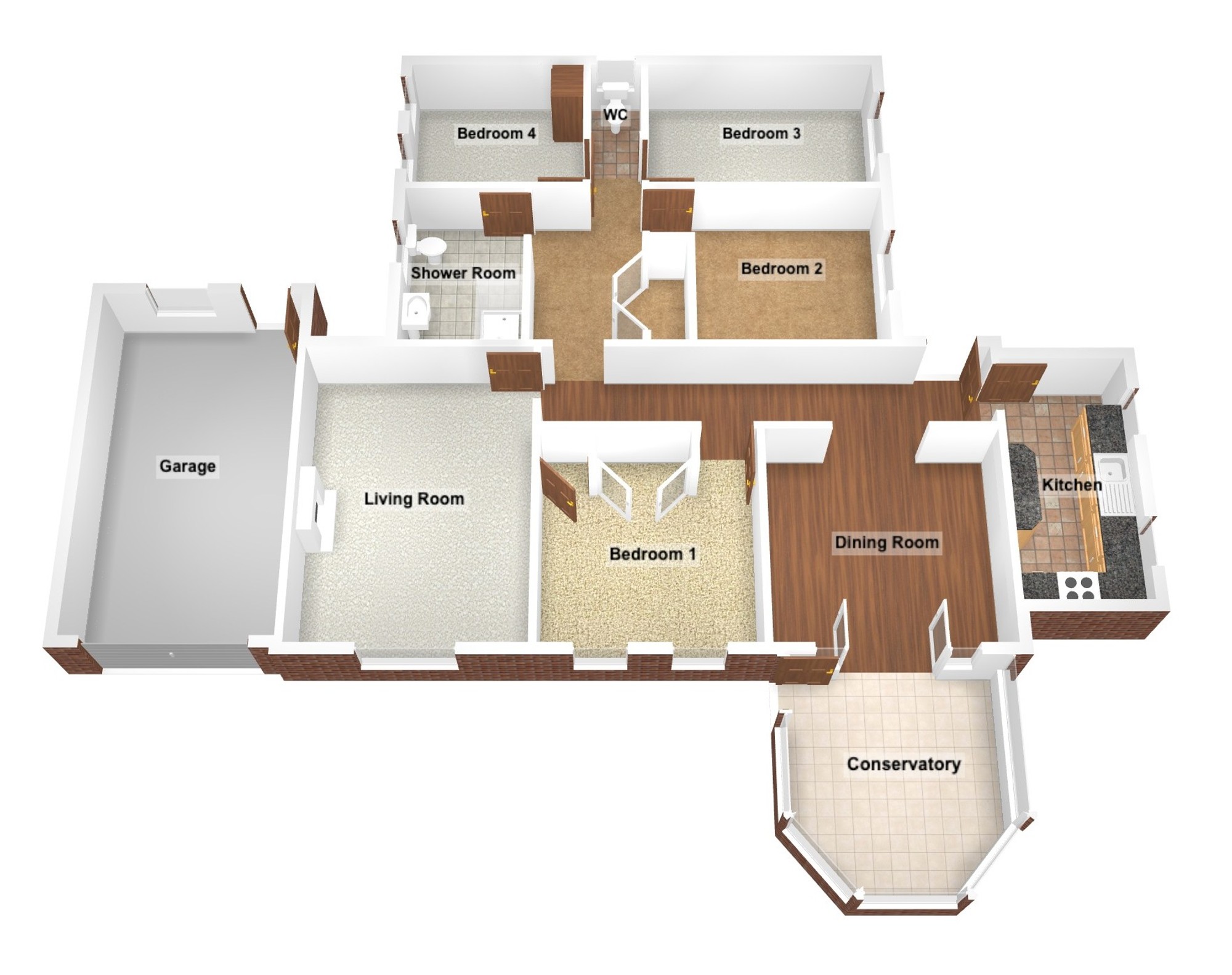 No. 4 Bedroom 9’4” x 7’9” (2.83m x 2.36m) - Fitted robe.