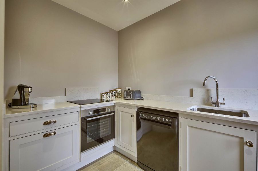 Range of units, Quartz worktops, plumbed for washing machine, ceramic tiled floor, built-in cupboard, oil fired boiler.