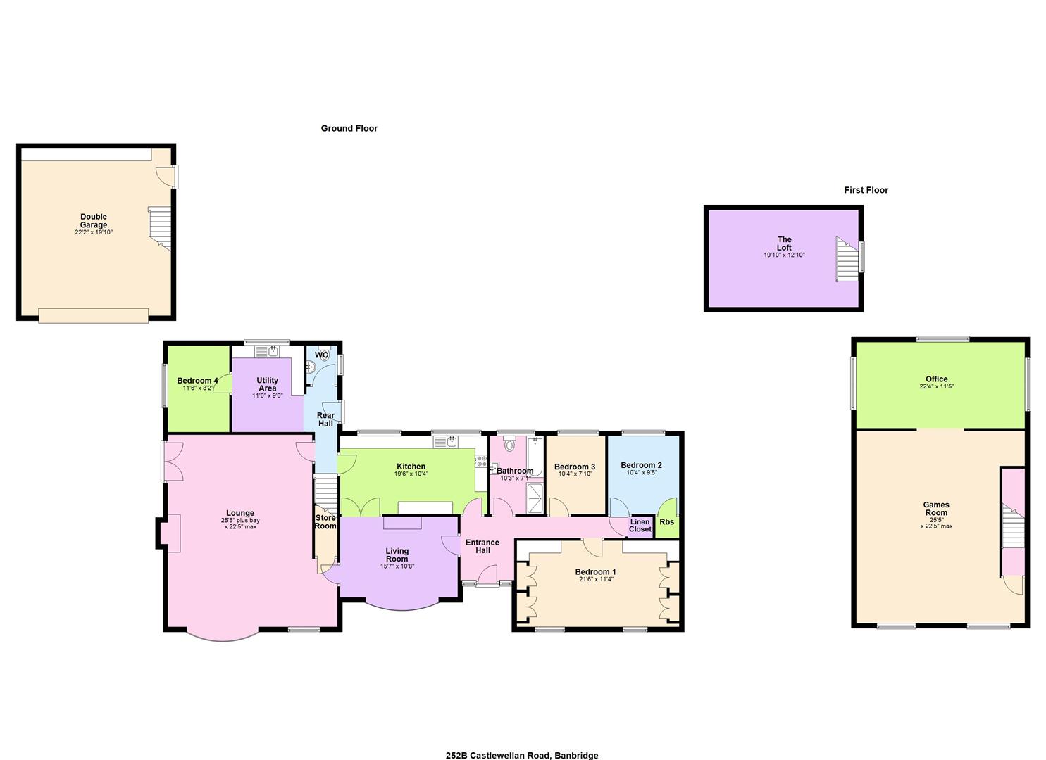 In addition to the residential space, this property includes a substantial 4,600 square foot commercial warehouse, 252A Castlewellan Road. This unique feature presents an excellent opportunity for those seeking to run a business from home or for additional storage needs. The warehouse adds significant value and versatility to the property, making it suitable for a variety of uses.