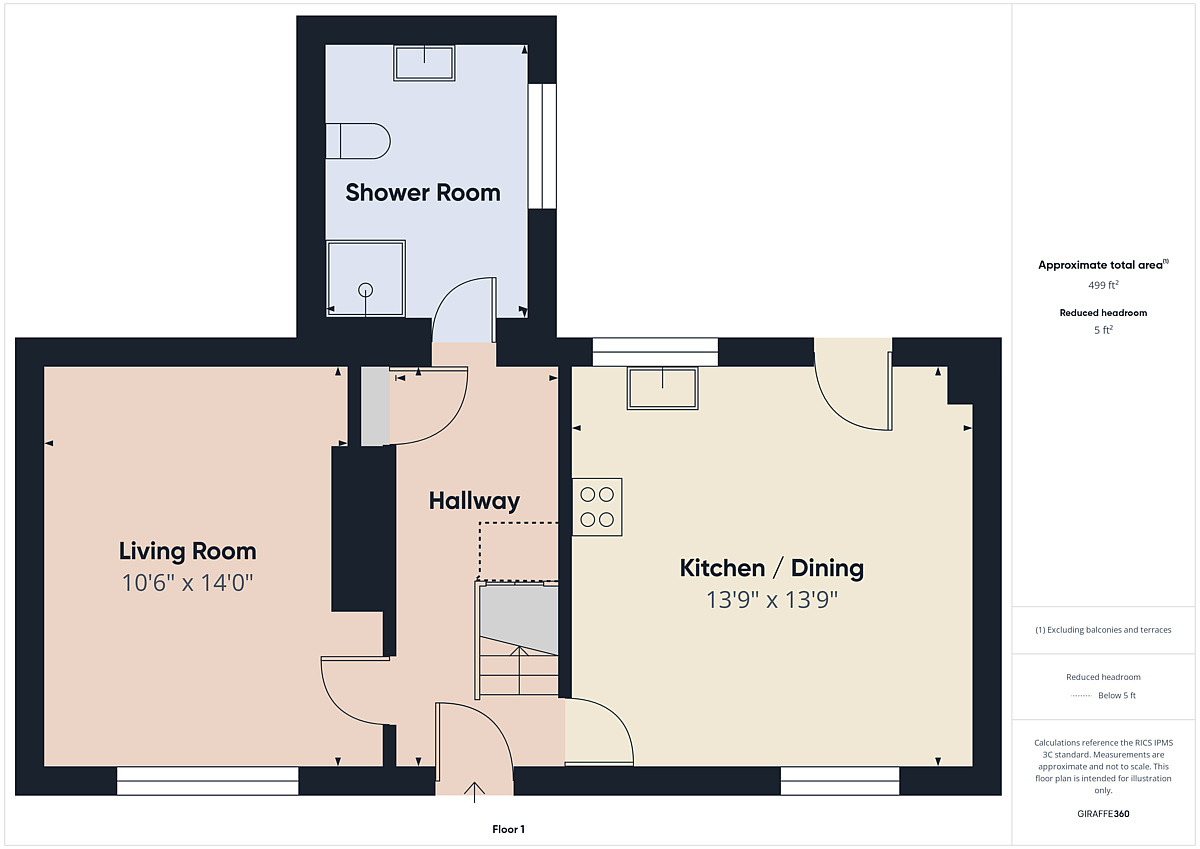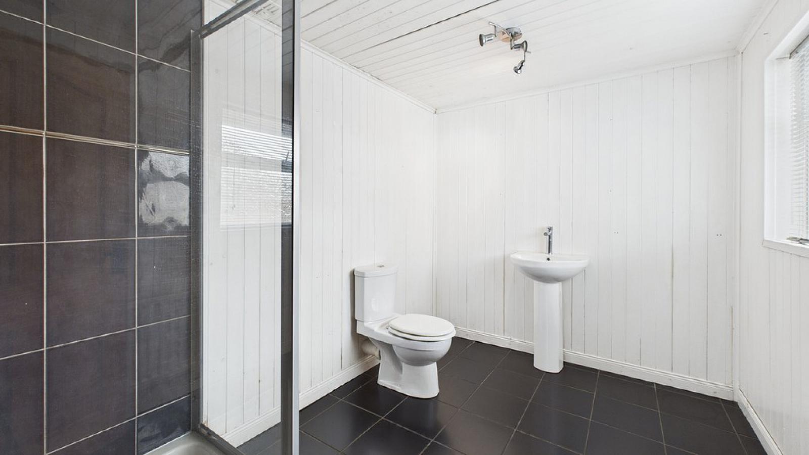 GROUND FLOOR SHOWER ROOM White suite comprising corner shower cubicle with electric shower; dual flush WC; pedestal wash hand basin; single panel radiator; tile floor; single panel radiator.