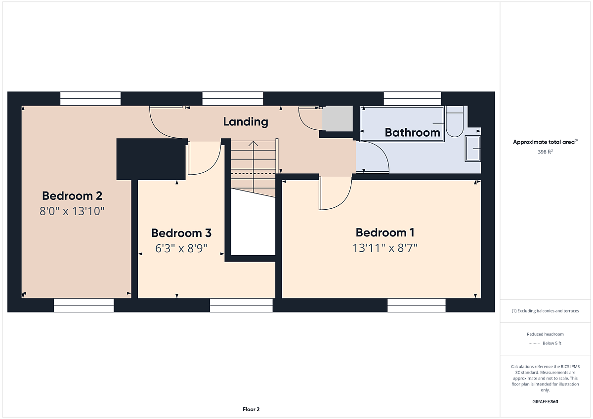 BEDROOM 2 13' 10" x 8' 0" (4.22m x 2.44m) Wood laminate floor; single panel radiator.