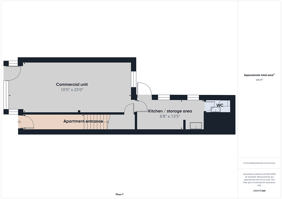 COMMERCIAL UNIT 25' 0" x 10' 5" (7.62m x 3.18m) Tile floor.