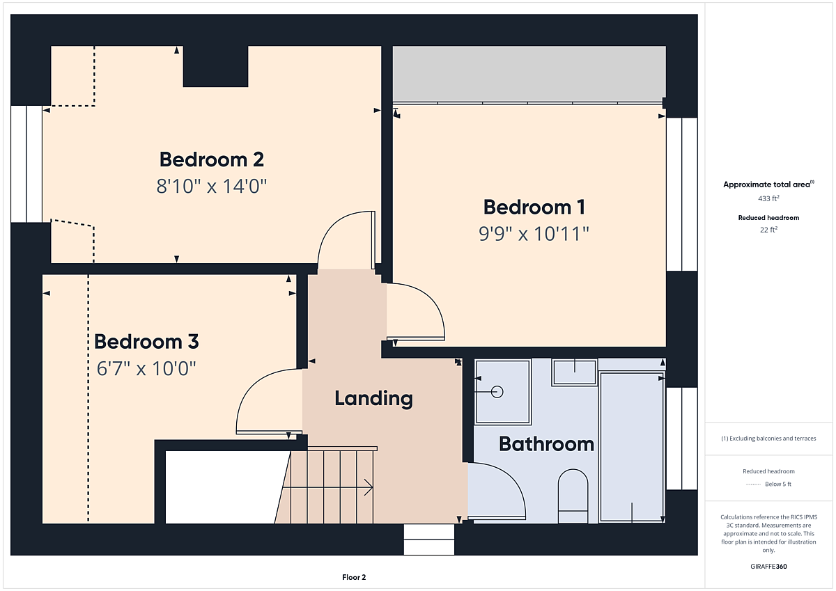 BEDROOM 3 10' 0" x 6' 7" (3.05m x 2.01m) Wood floor; single panel radiator.