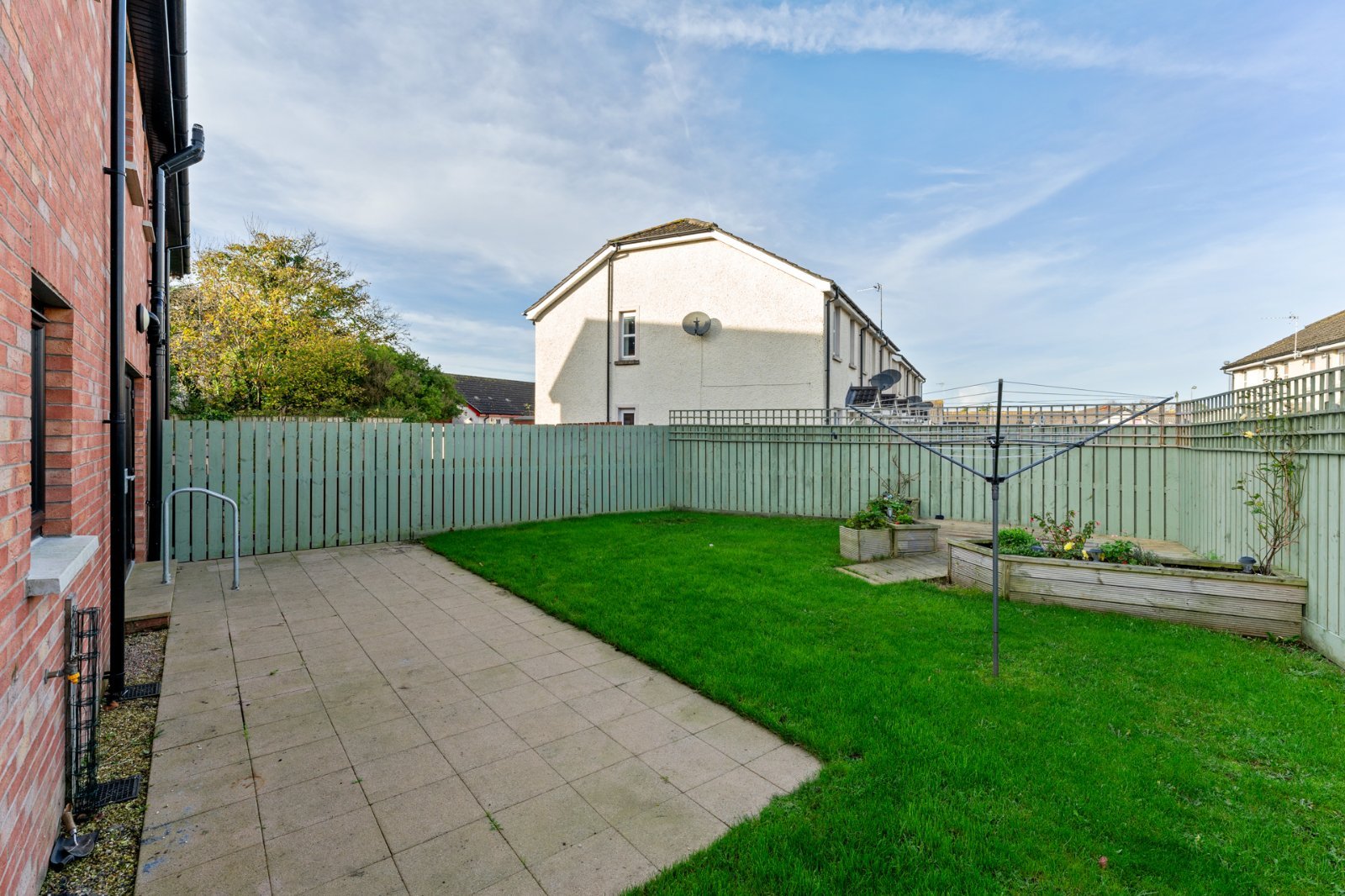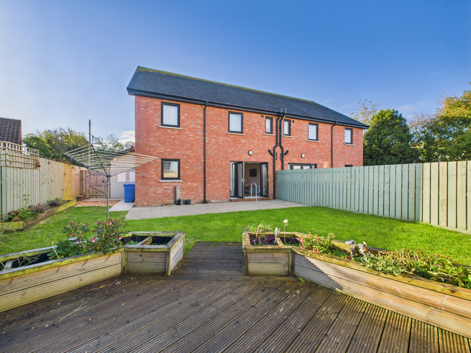 Fully enclosed rear garden in lawn with paved patio area and decked patio area.