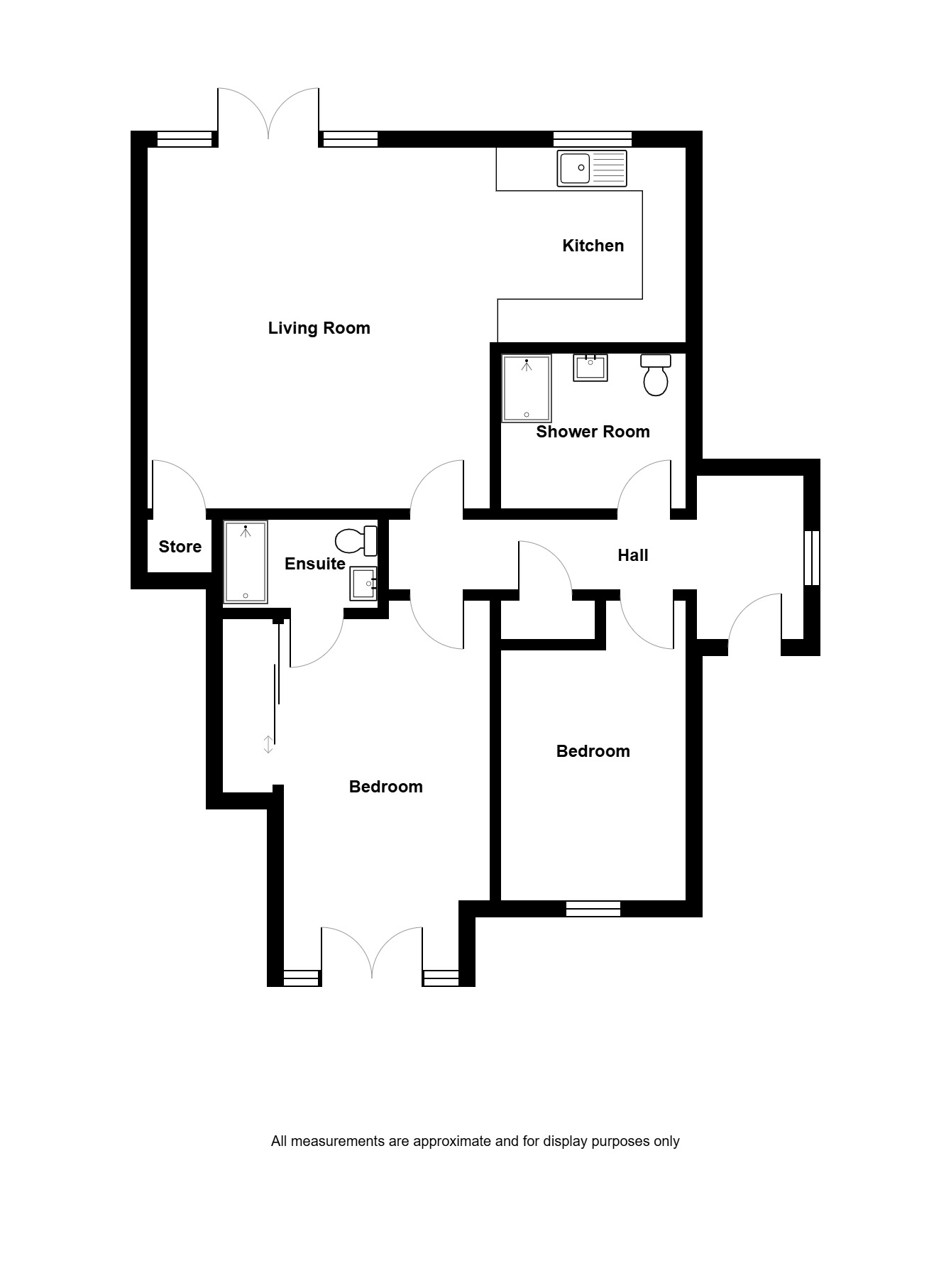The property offers bright and spacious accommodation comprising an open plan kitchen / living / dining area with French doors opening to the patio and garden, two generous bedrooms, including a master bedroom with modern ensuite shower room, and an additional contemporary shower room.