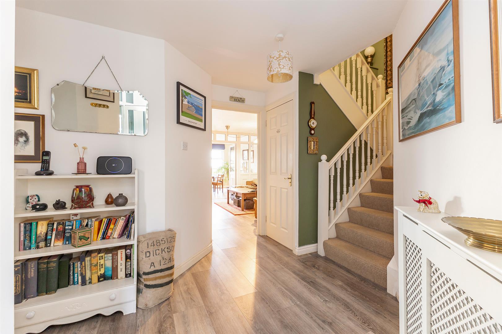 The ground floor comprises living room with French doors through to a family room. The family room has picturesque views of the Irish Sea and double glazed French doors to outside. Also situated off the living room is a good sized kitchen with casual dining area. Lastly, there is a cosy snug which would also be ideal for a home office. Upstairs this fine home is further enhanced by having four well proportioned bedrooms including main bedroom with picturesque views, en suite shower room and privately owned balcony which is a wonderful space to enjoy the scenery and watch the world go by. There is also a shower room with three piece white suite which includes large walk-in shower cubicle. Outside the property affords that all important low maintenance aspect with front courtyard and privately owned landscaped rear and side garden areas with attractive brick paviour terrace, planting with shrubs and views over the communal gardens and tennis court to the sea. This property also comes with two private allocated car parking spaces and there is plenty of additional visitor parking. Other benefits include Phoenix Gas heating, uPVC double glazed windows, downstairs WC and utility room.