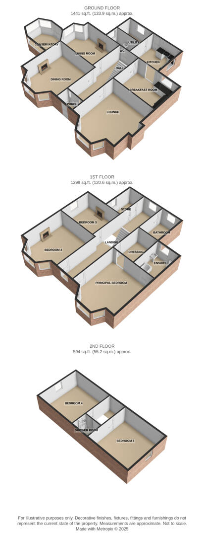 Five bedrooms, including a primary suite with en suite shower room and dressing area