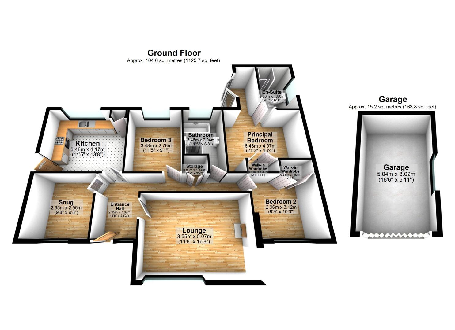 The bungalow itself is well balanced in layout, providing generous and flexible accommodation all on one level. A welcoming reception hall leads to the lounge with feature wood burning stove, creating a warm and inviting focal point, while a separate snug offers further versatility, perhaps as a home office, playroom or quiet retreat. The kitchen includes both dining space and direct access to the rear garden, making it perfect for day-to-day living.