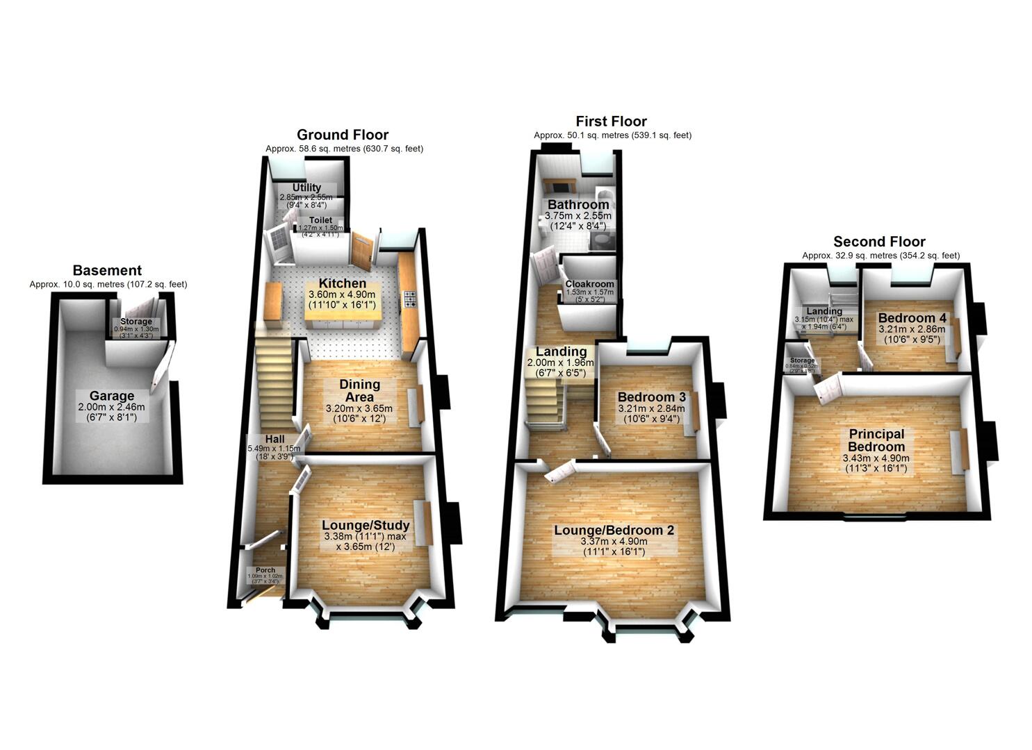 Bedroom Four 10'6" X 9'5" (3.21m X 2.86m)