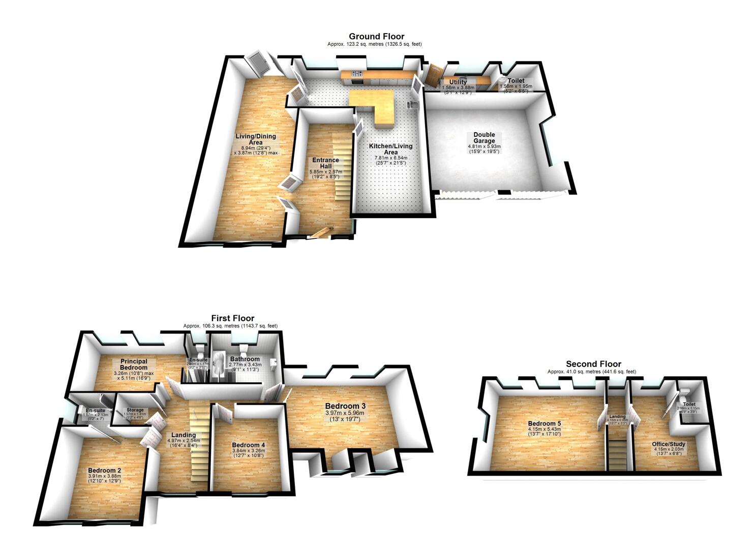 The first floor hosts a suite of well-appointed bedrooms, offering both privacy and comfort. Two of these rooms benefit from en suite facilities, and a stylish family bathroom serves the remainder, providing a modern and practical solution for everyday living. The second floor adds further versatility, with additional rooms suitable for use as bedrooms, a home office, or guest accommodation, ensuring the home can evolve with the needs of its occupants.
