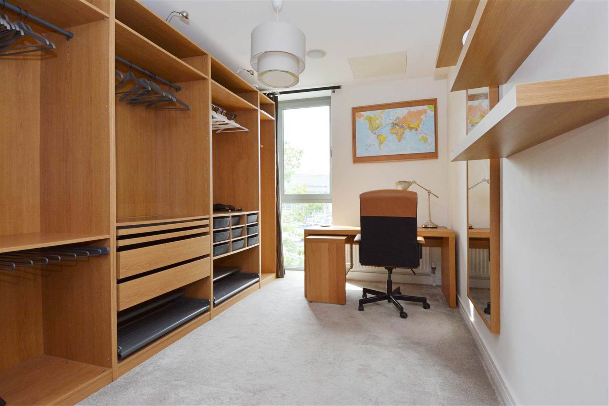Carpeted, built-in wardrobe.