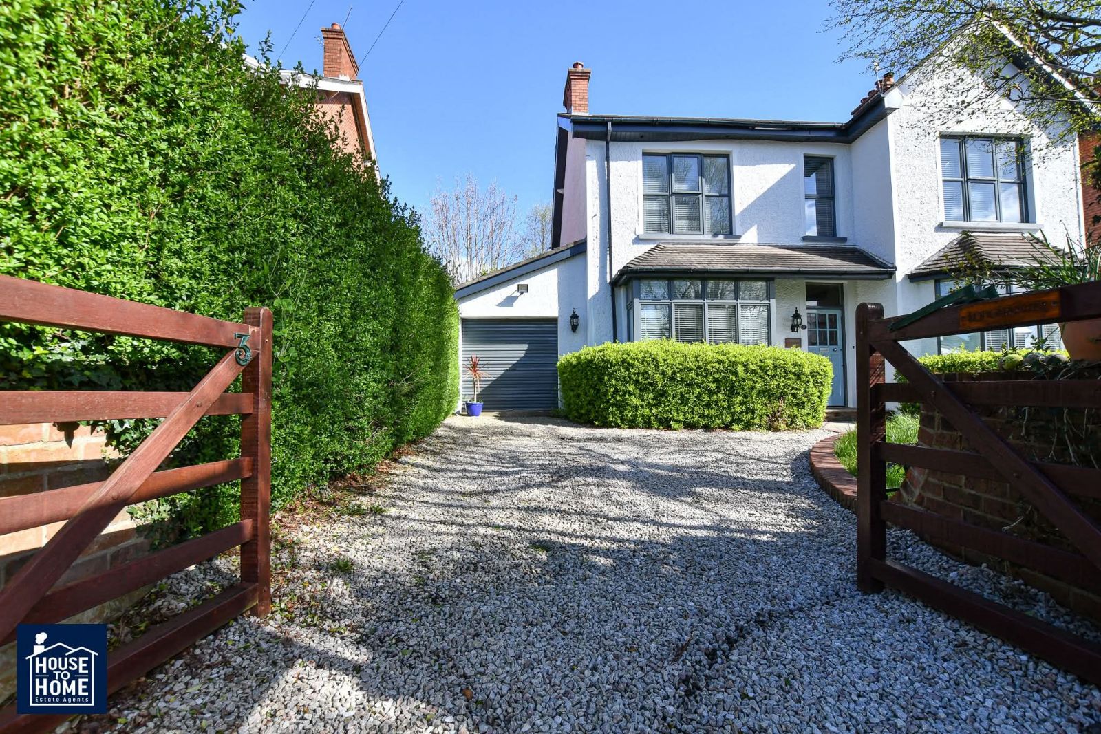 Gated to garden in lawn, driveway leading to